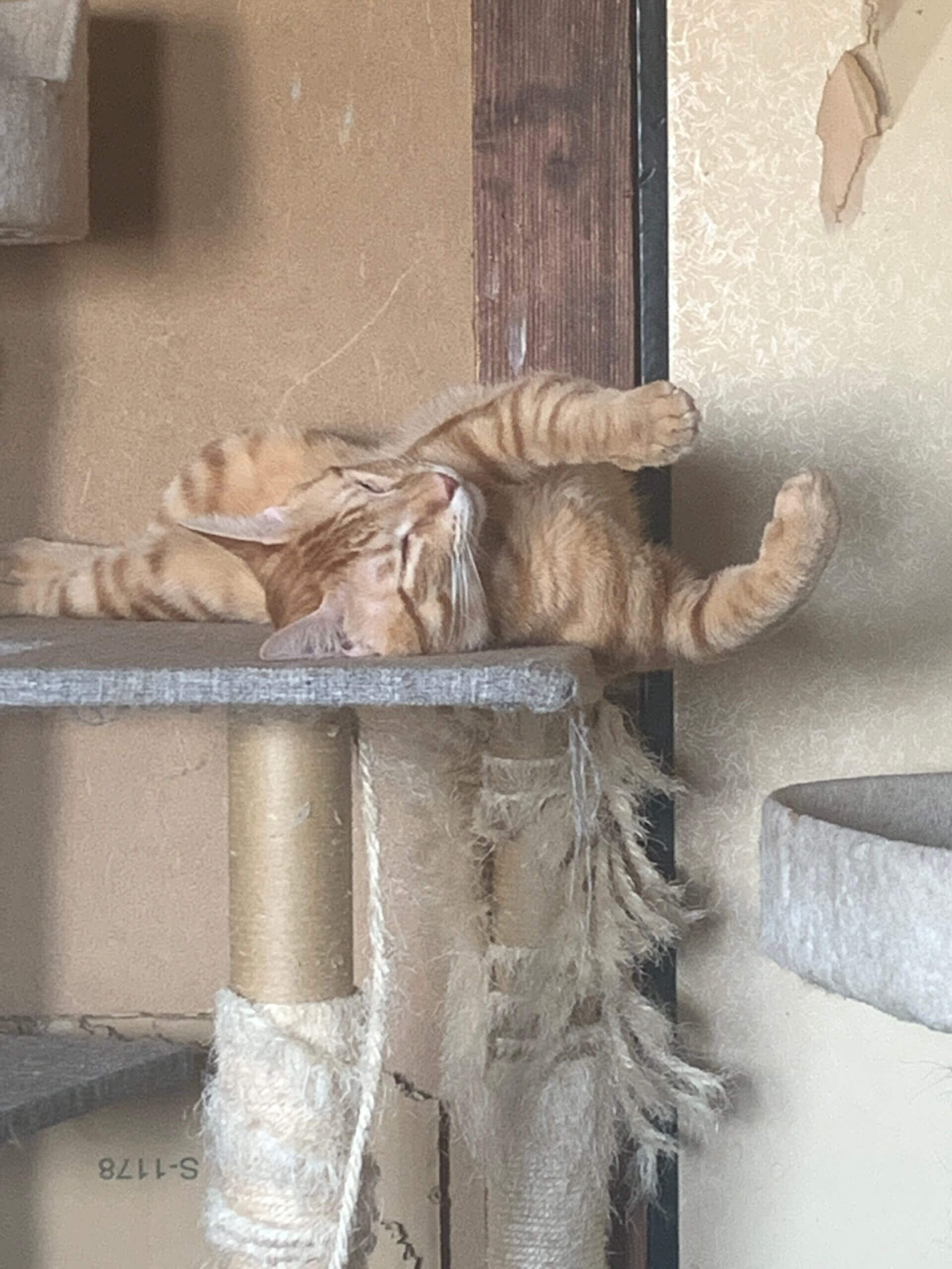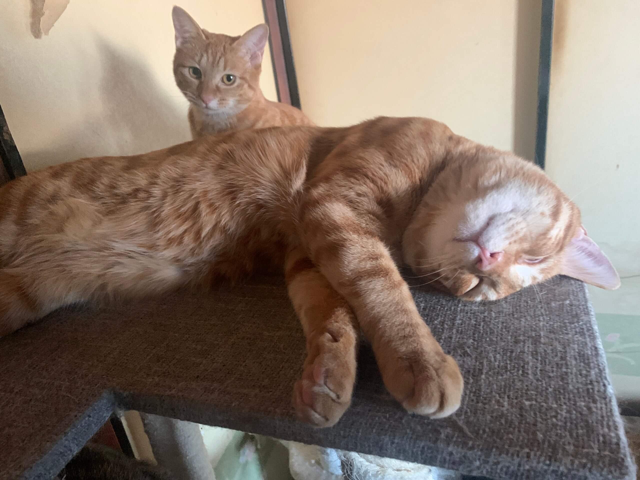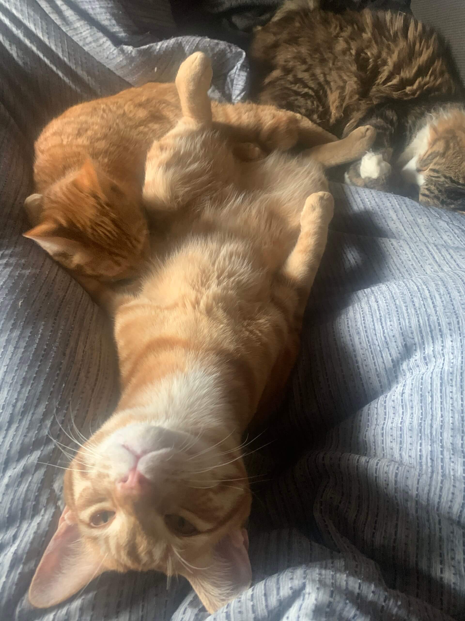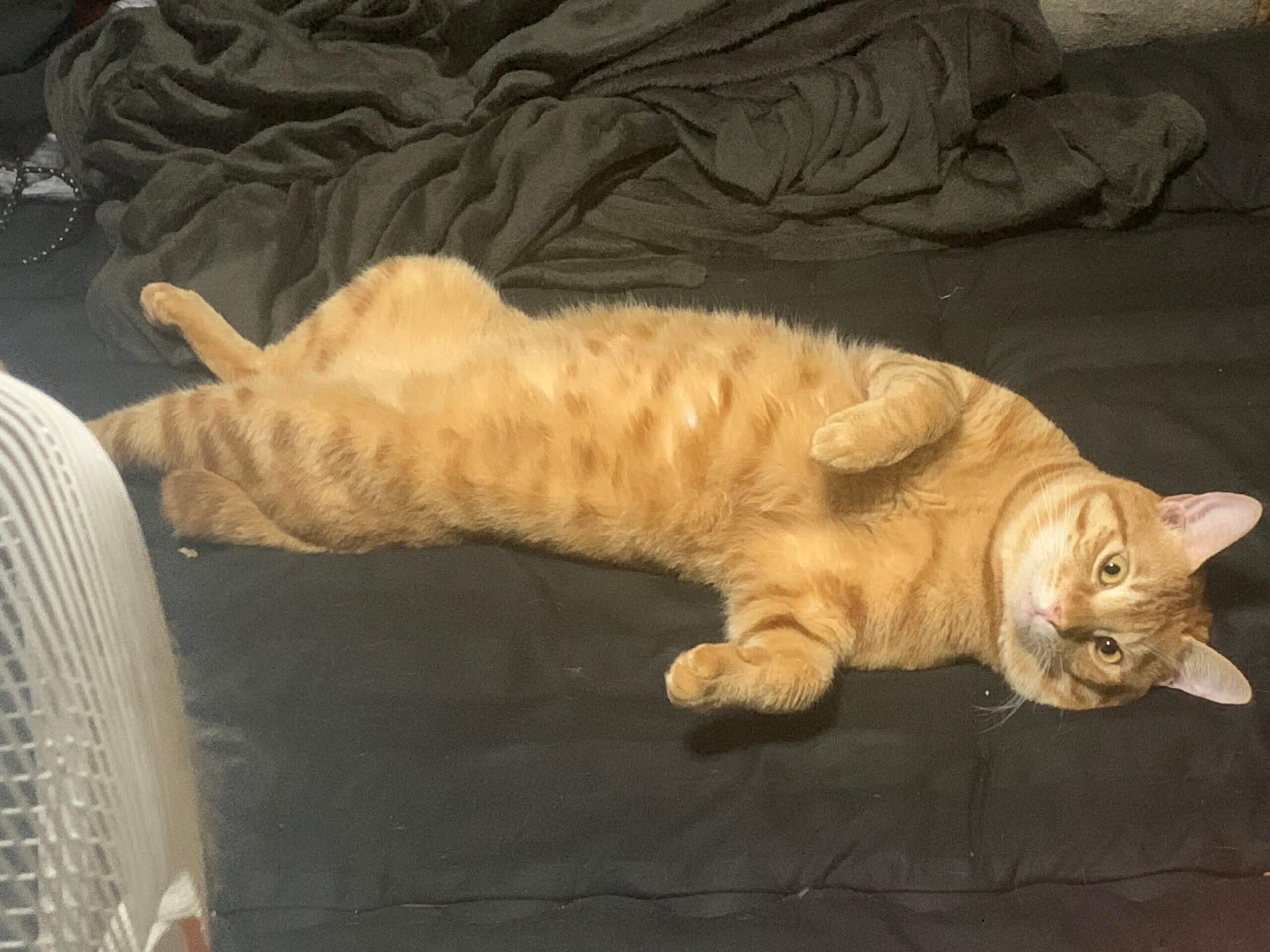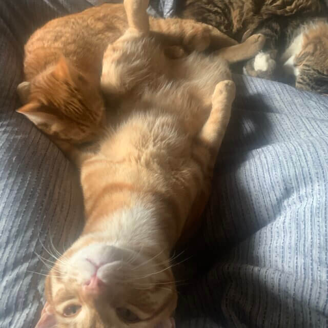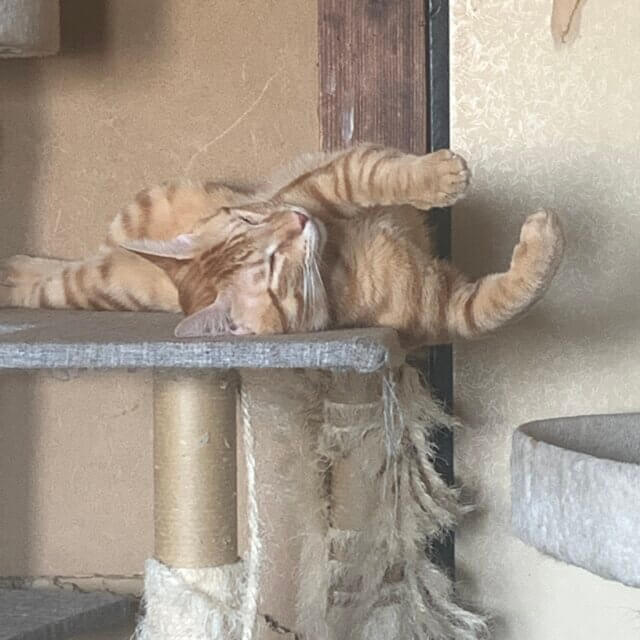 体が少し大きくよく遊んでよく甘えてよく寝る子です!独特な寝相で寝る事がありとても可愛いです!