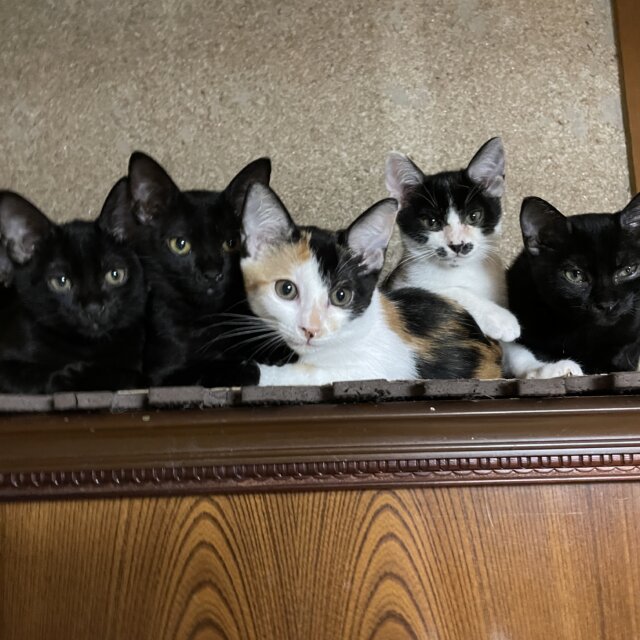 黒 4匹 三毛1匹 白黒1匹