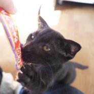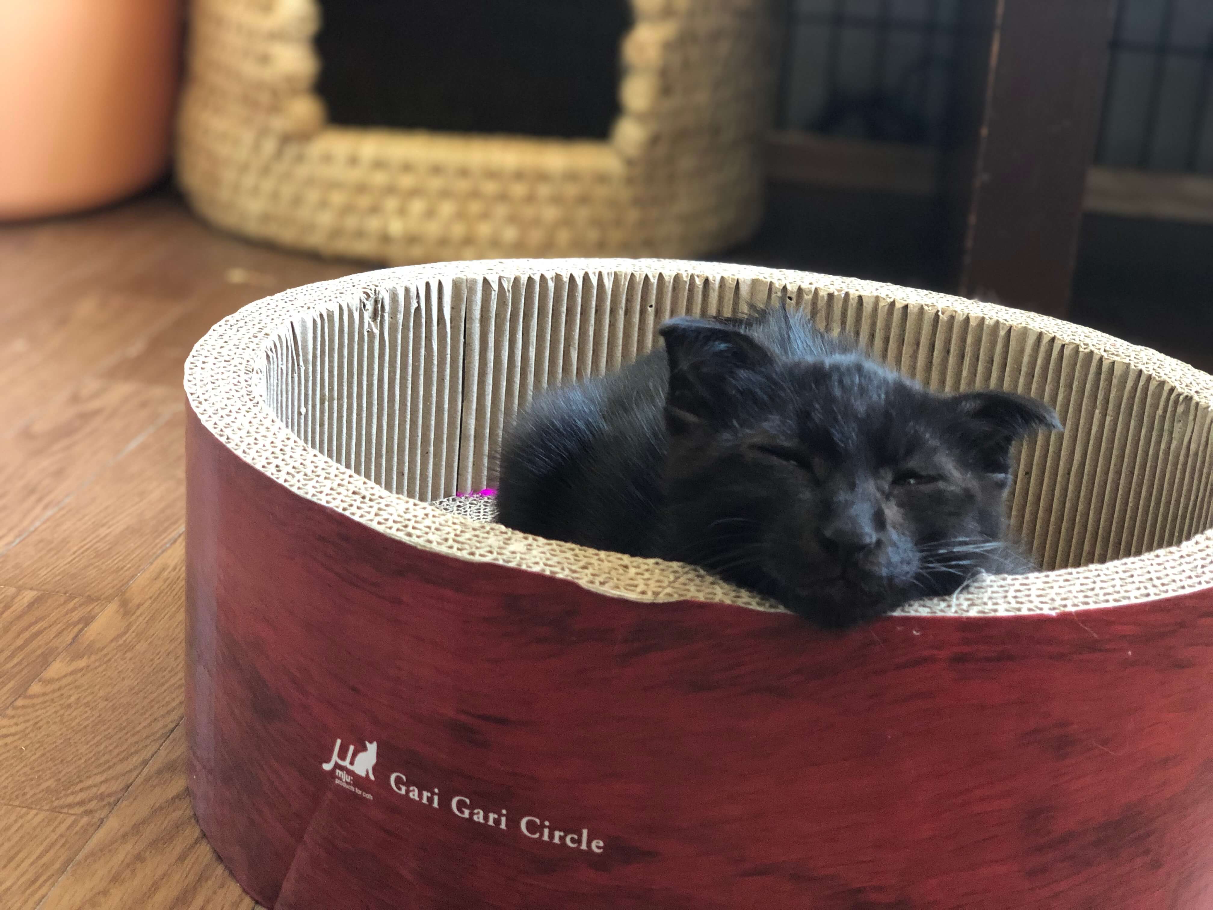 子猫にしては、とても落ち着いていて、おっとりした感じです。でも、遊ぶスイッチが入ると、猛烈遊びます!!