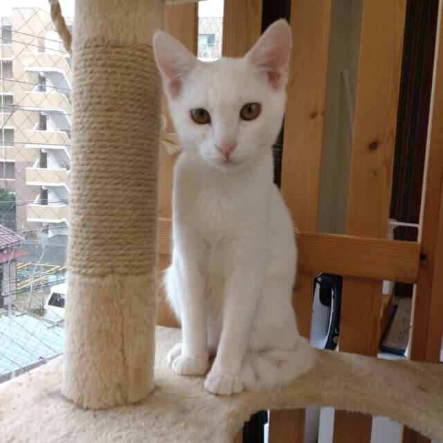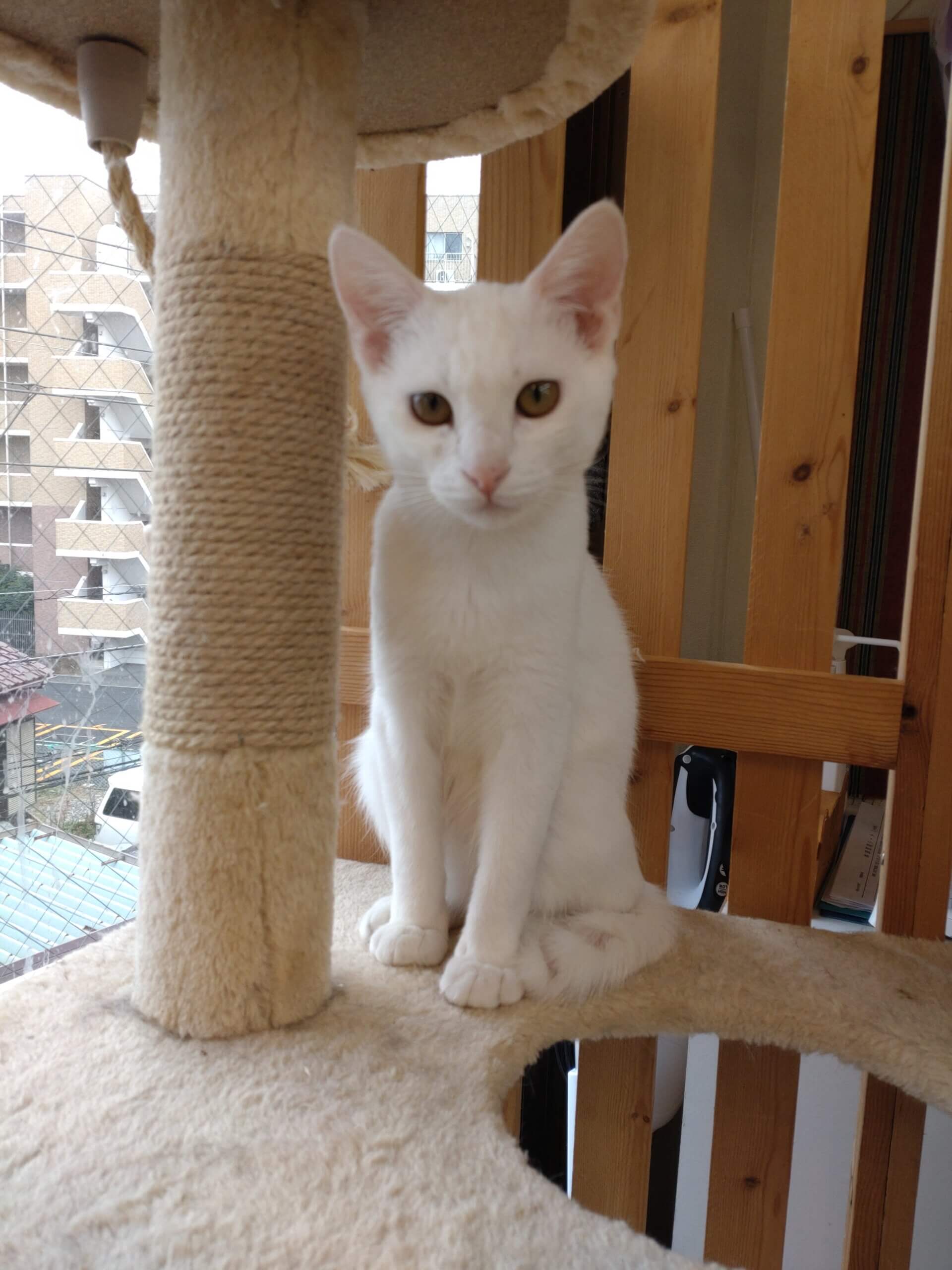 保護当初は猫風邪をひいており目の状態が悪かったんですが、今ではすっかり綺麗になり美猫さんになりました!