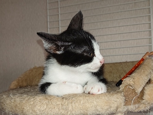 6匹兄弟の一匹です。やんちゃな子です。動くものに興味津々。ほうきで掃除していると一目散に向かってきます。