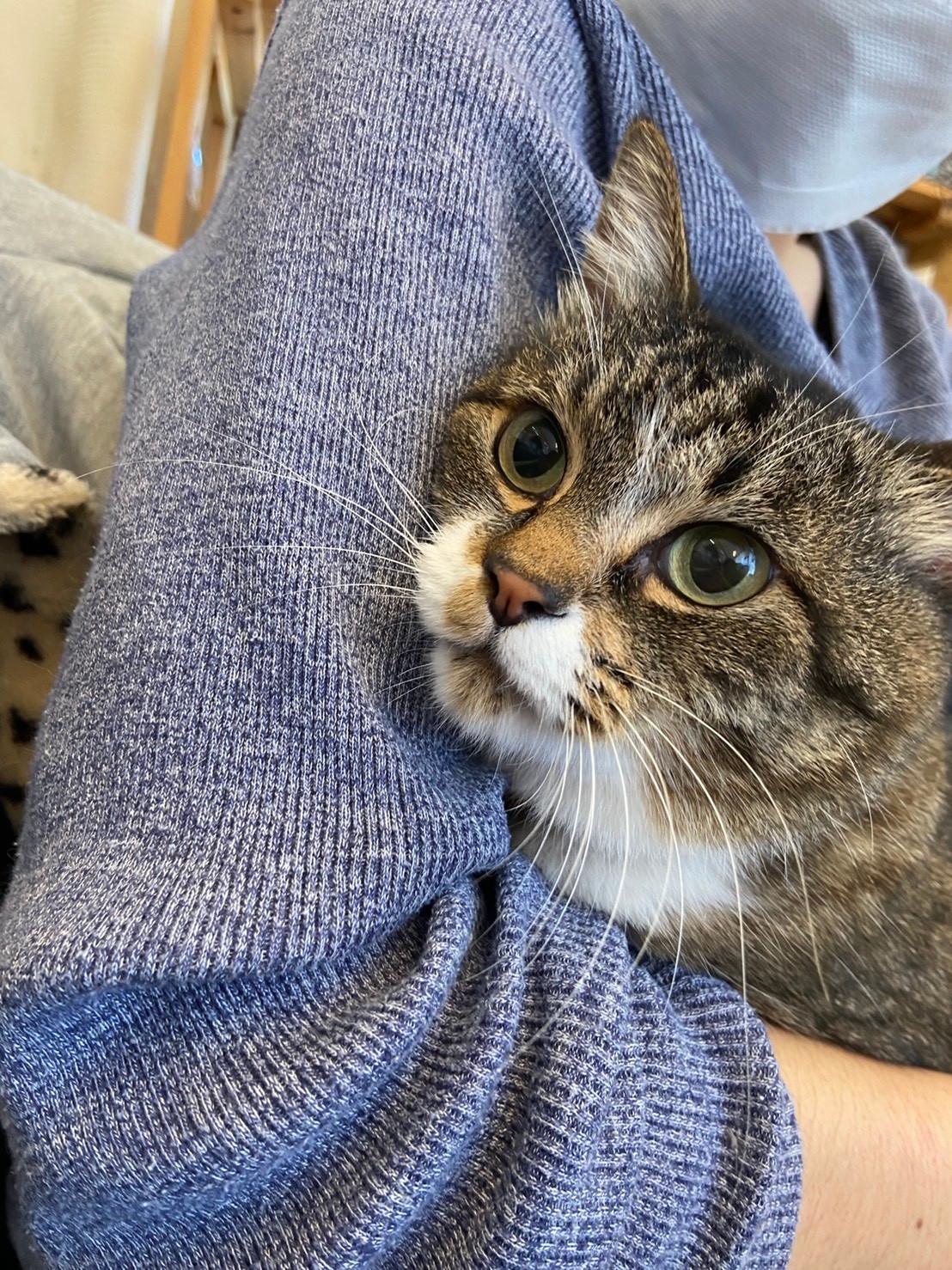 2021年11月半ばに当施設に仲間入りしたちびちゃんは日中はお気に入りの場所で寝て過ごしていることが多くマイペースに過ごしております。