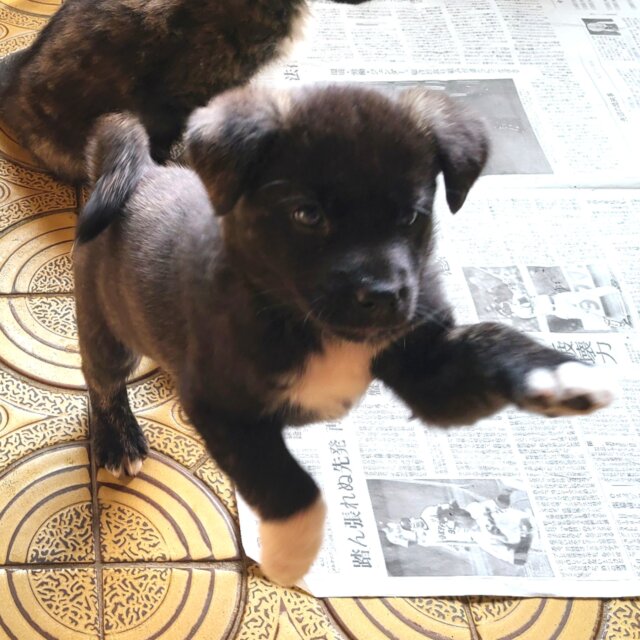 保護した時は、兄妹の中で一番小さく心配でしたが、毎日たくさん食べて活発に走り回る元気な子です。