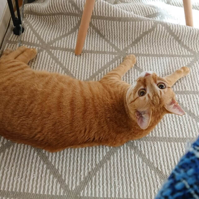 保護してから、夜鳴きやお外に戻りたそうな素振りは一切なく、ご飯もよく食べ、一緒に保護した兄弟猫とすっかり寛いでくれています。