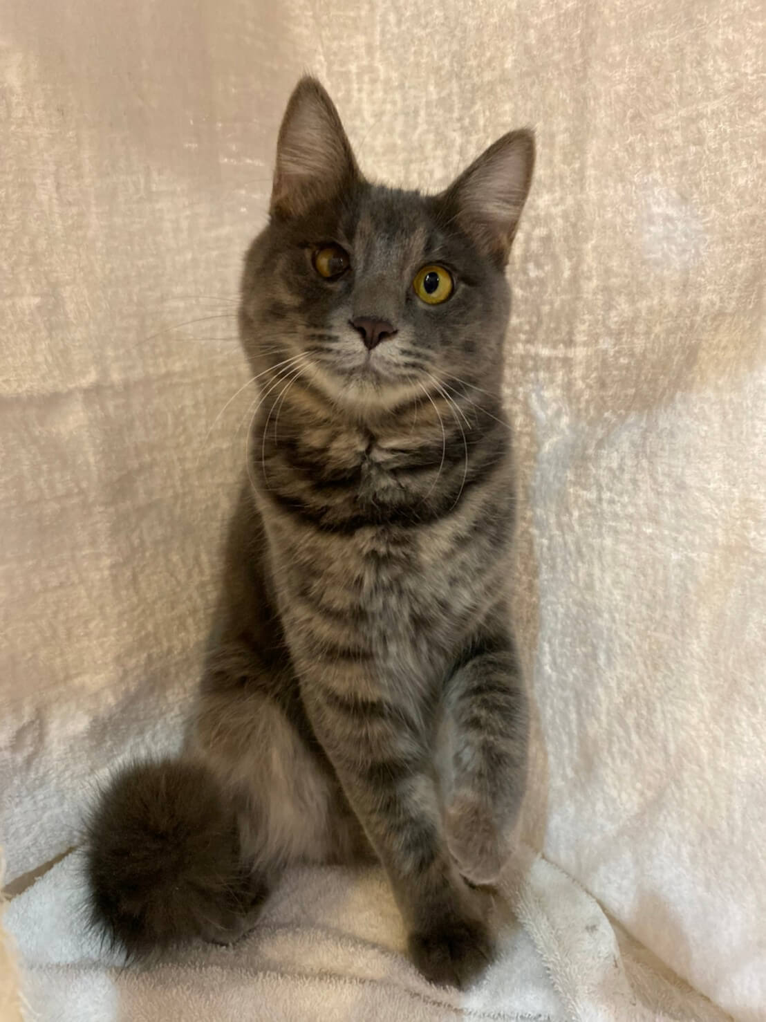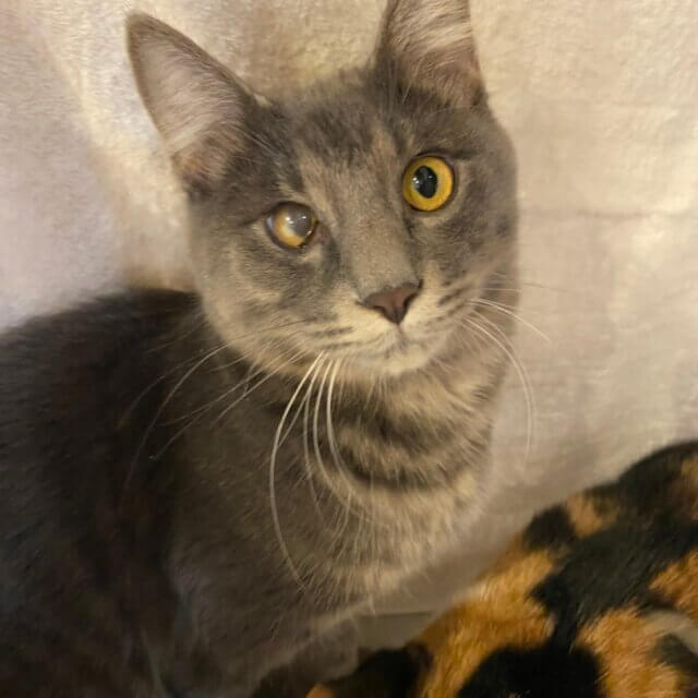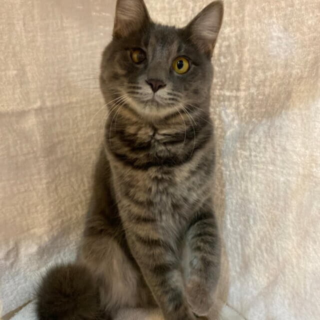 毛並みがグレーでフワフワです。