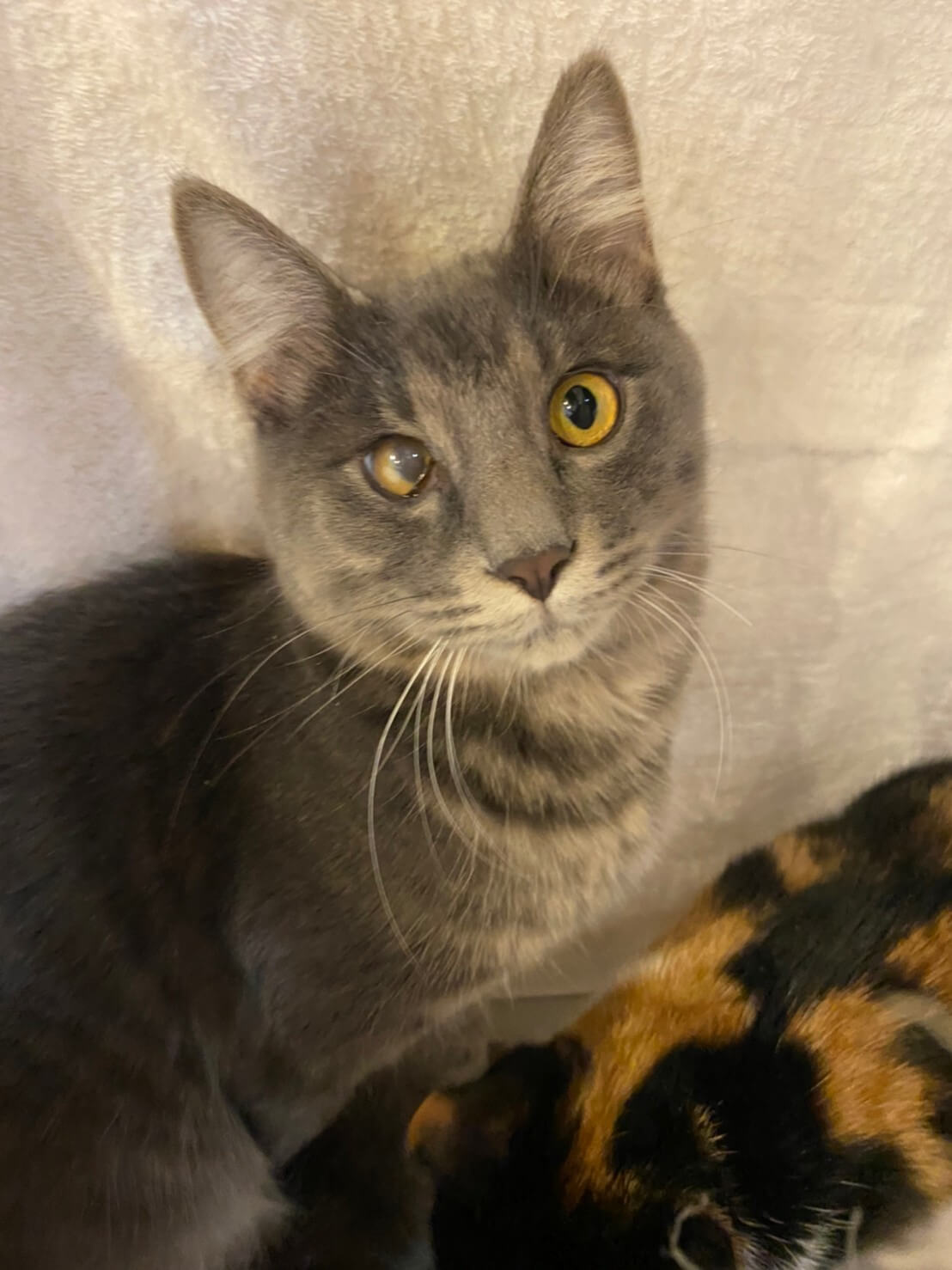 保護時にひいていた風邪のせいで、片目が少し白濁しています。