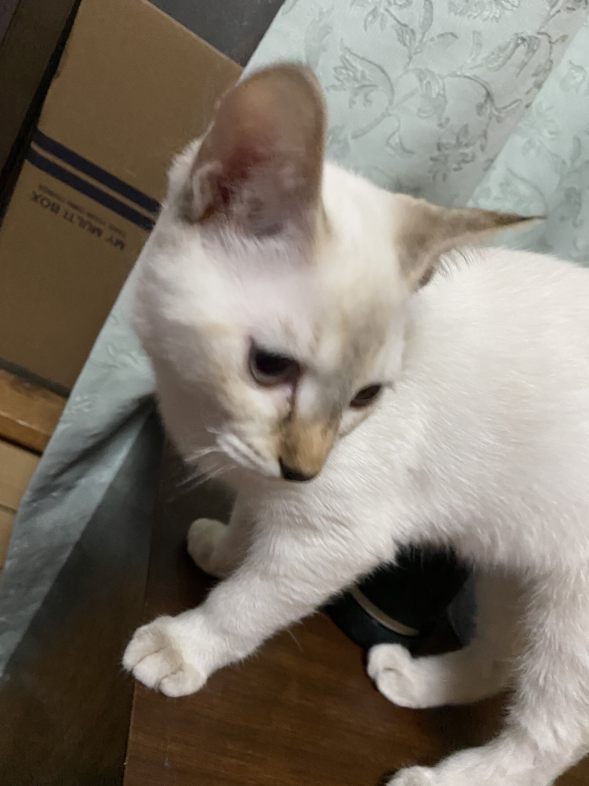 妊娠してしまい捨てる訳にもいかず育てておりましたが他にも何匹か子猫がいるため育てられないと判断し今回応募させていただいてます。