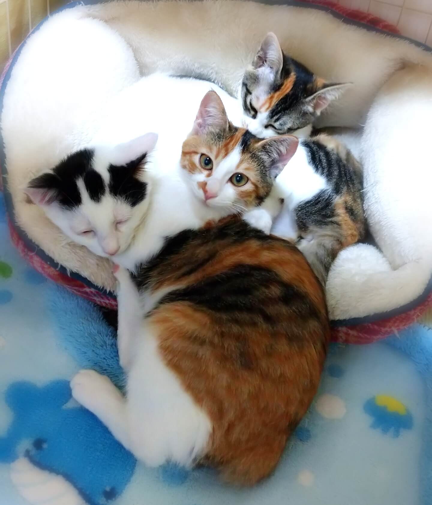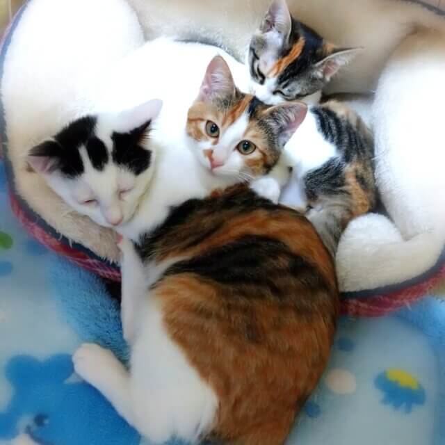 同時募集中の、縞三毛猫と白黒の子と三つ子です。