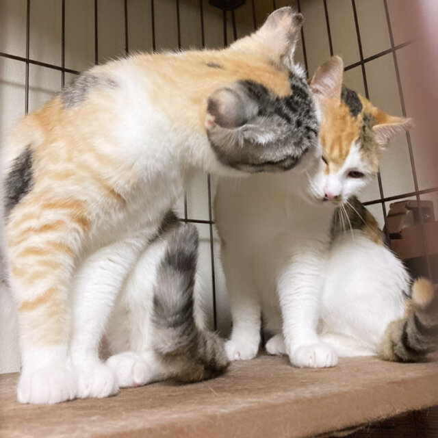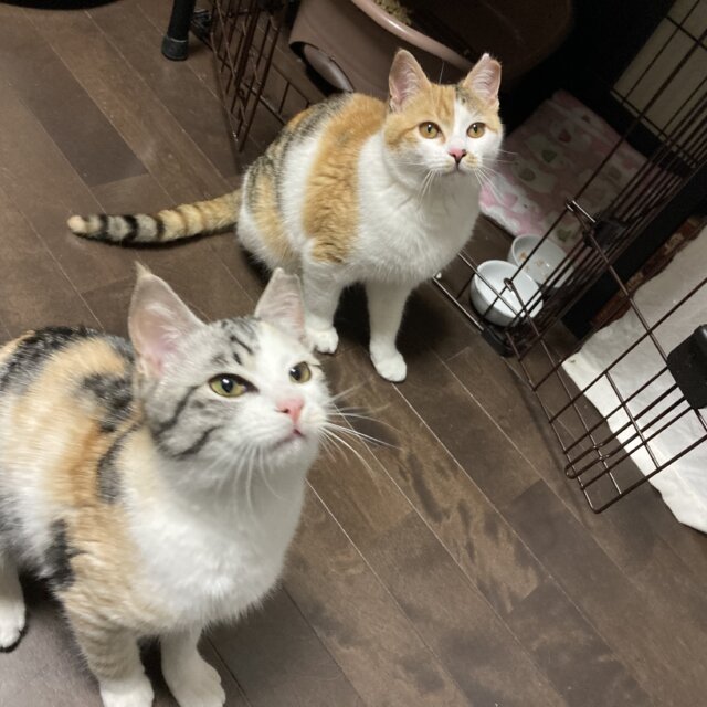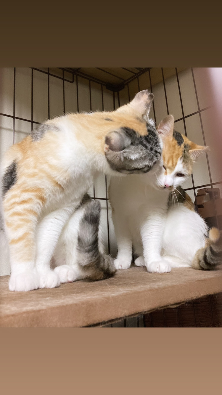 ※写真に写っている三毛が妹の黄凛ちゃんです。性格は控えめなビビリちゃんです。 -