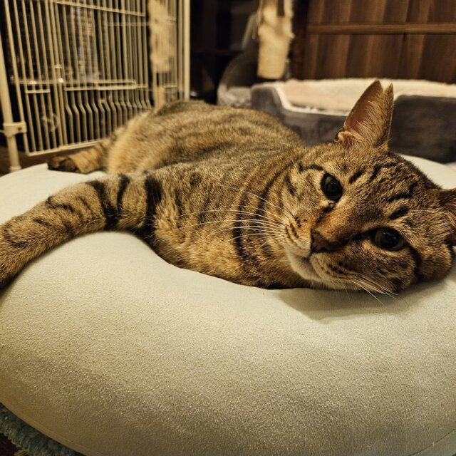 柄も茶系キジトラで、黒のスポットが綺麗に映えてます