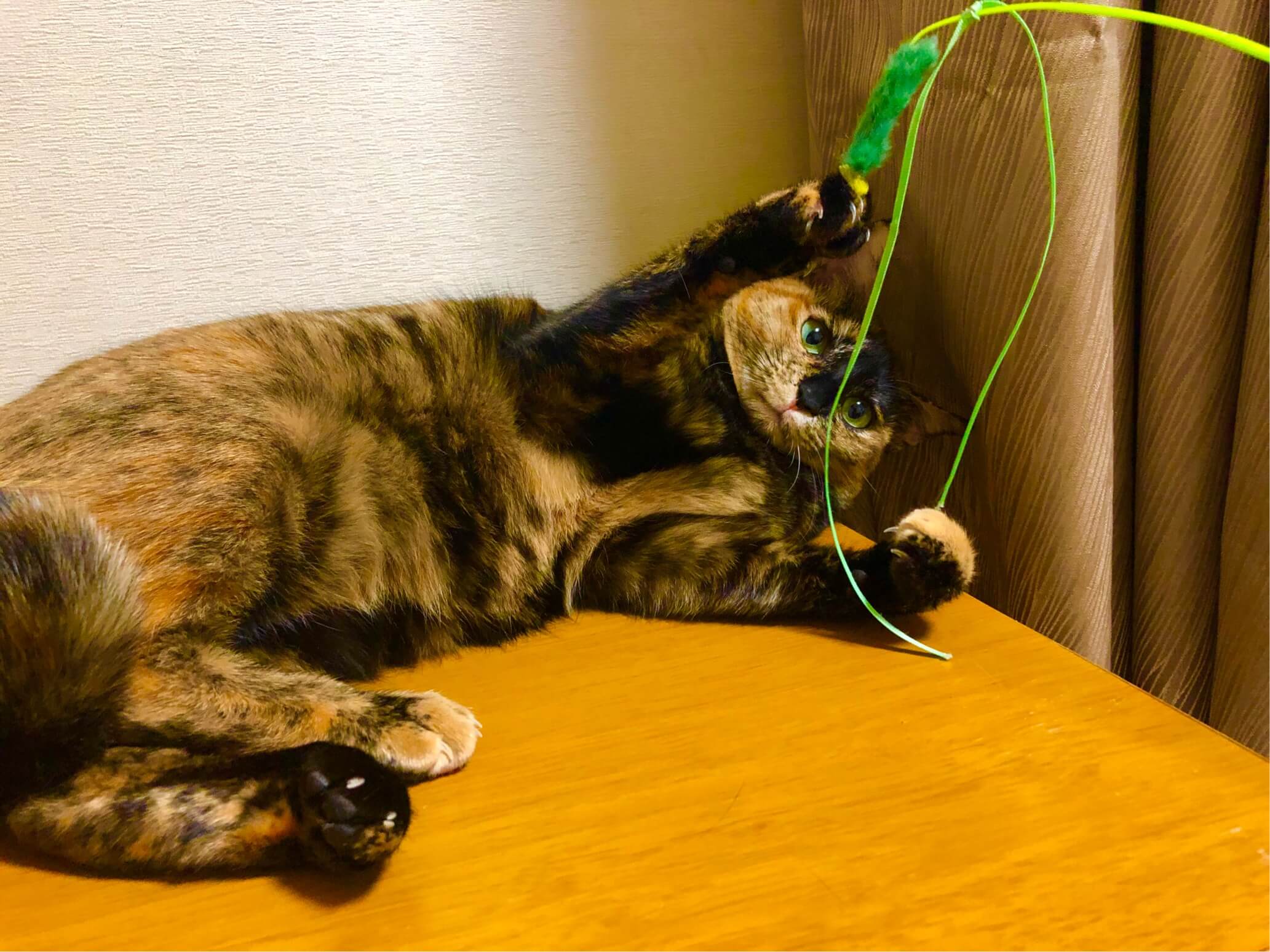 おもちゃも大好き、抱っこも大人しくさせてくれる、少ーし大柄なサビ猫さん。