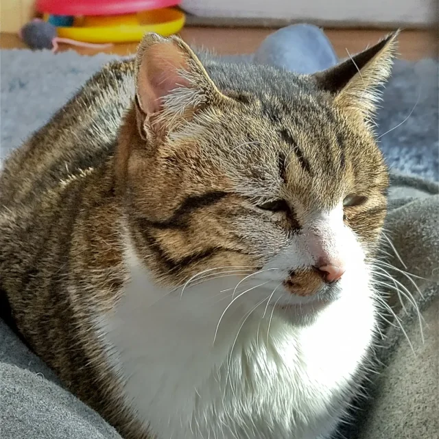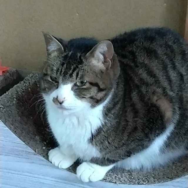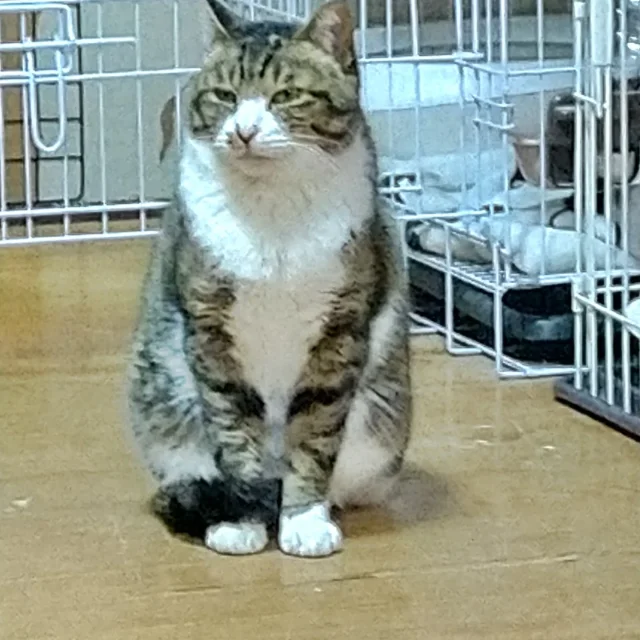 ご近所で愛犬の散歩中に出会い、少し弱ってるように見受けられたので捕獲保護して、初期医療と去勢手術、ワクチン接種、血液検査にて、猫エイズ、白血病の陰性を確認しました。保護して、家猫修行5ヶ月 となりますが、すっかり家猫さんの穏やかなお顔になりました。どなたか、終生可愛がってくださる方との出会いをと思います。