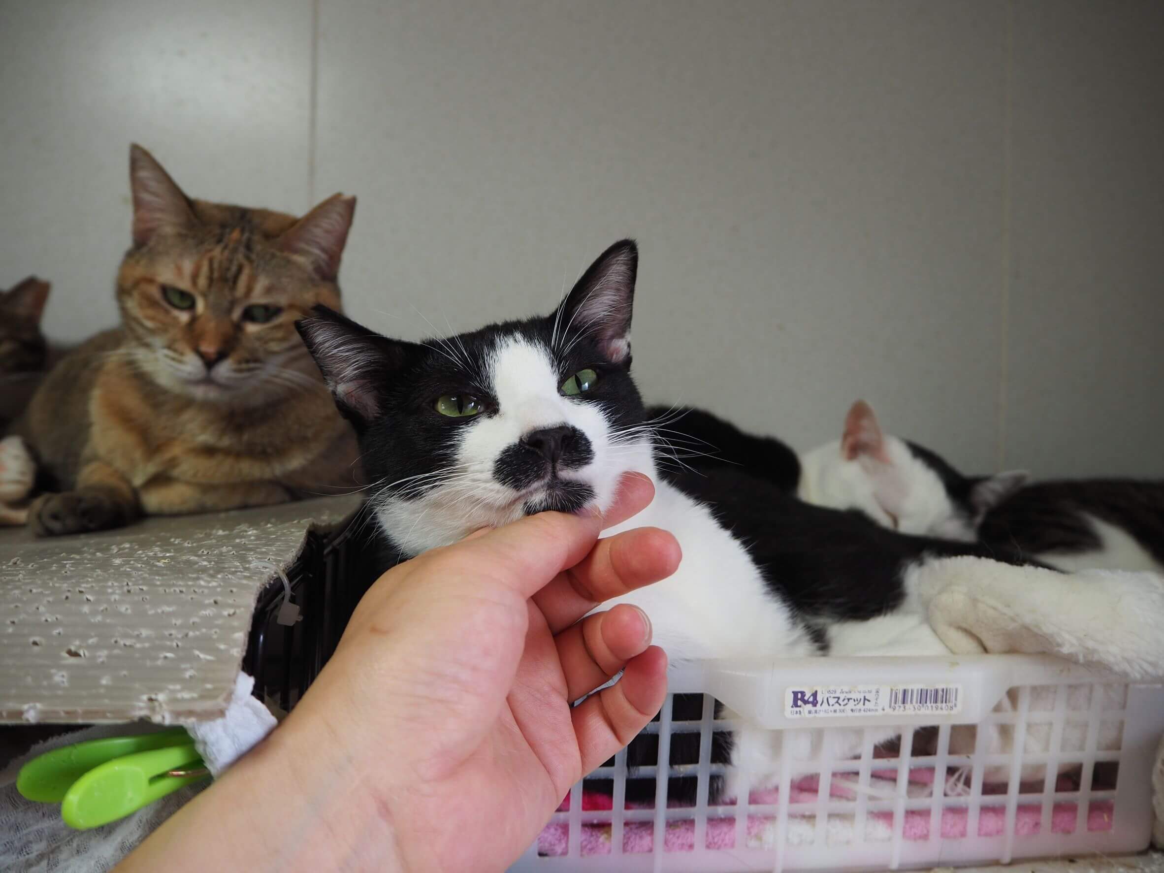 行ってみると次々に猫が現れ、瘦せているので保護しました。多くの子がエイズ陽性ですが、懐こい子が多く里親さんを探してあげたいと思います。