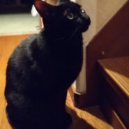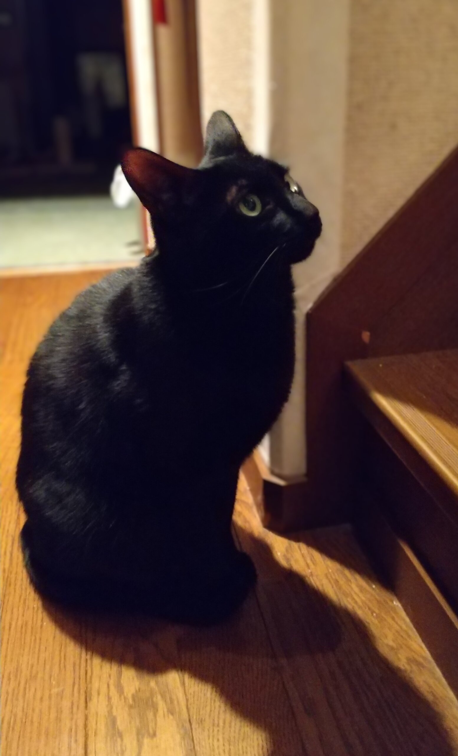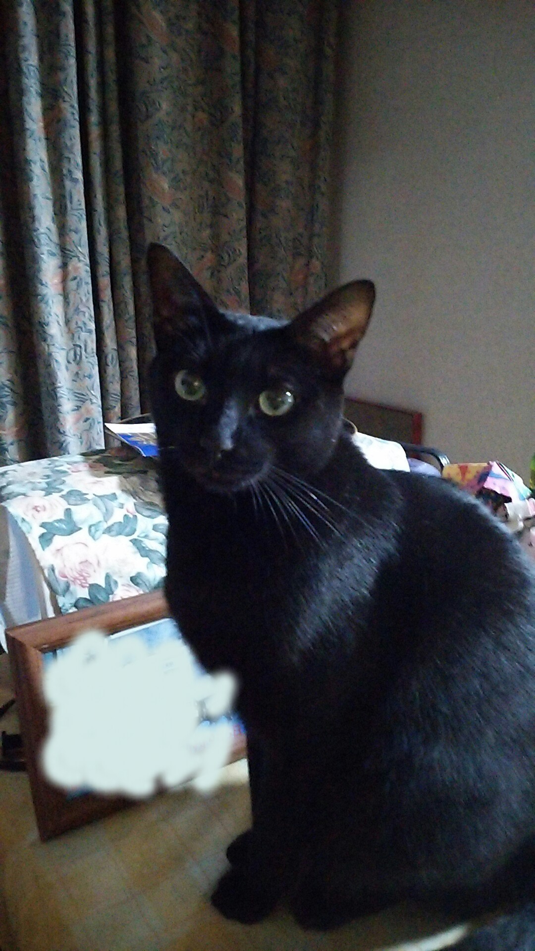 全身黒だけど、なぜかヒゲが1本だけ白い。