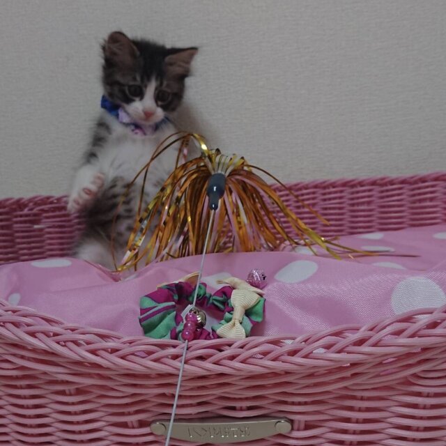 ママ猫と一緒に保護したので、おうちで生まれました。よく食べて、元気いっぱい兄弟と遊んでいます。