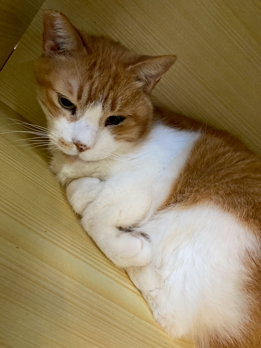 元野良猫さんで、ずっと住んでいた場所が取り壊されるとのことで保護されております。
