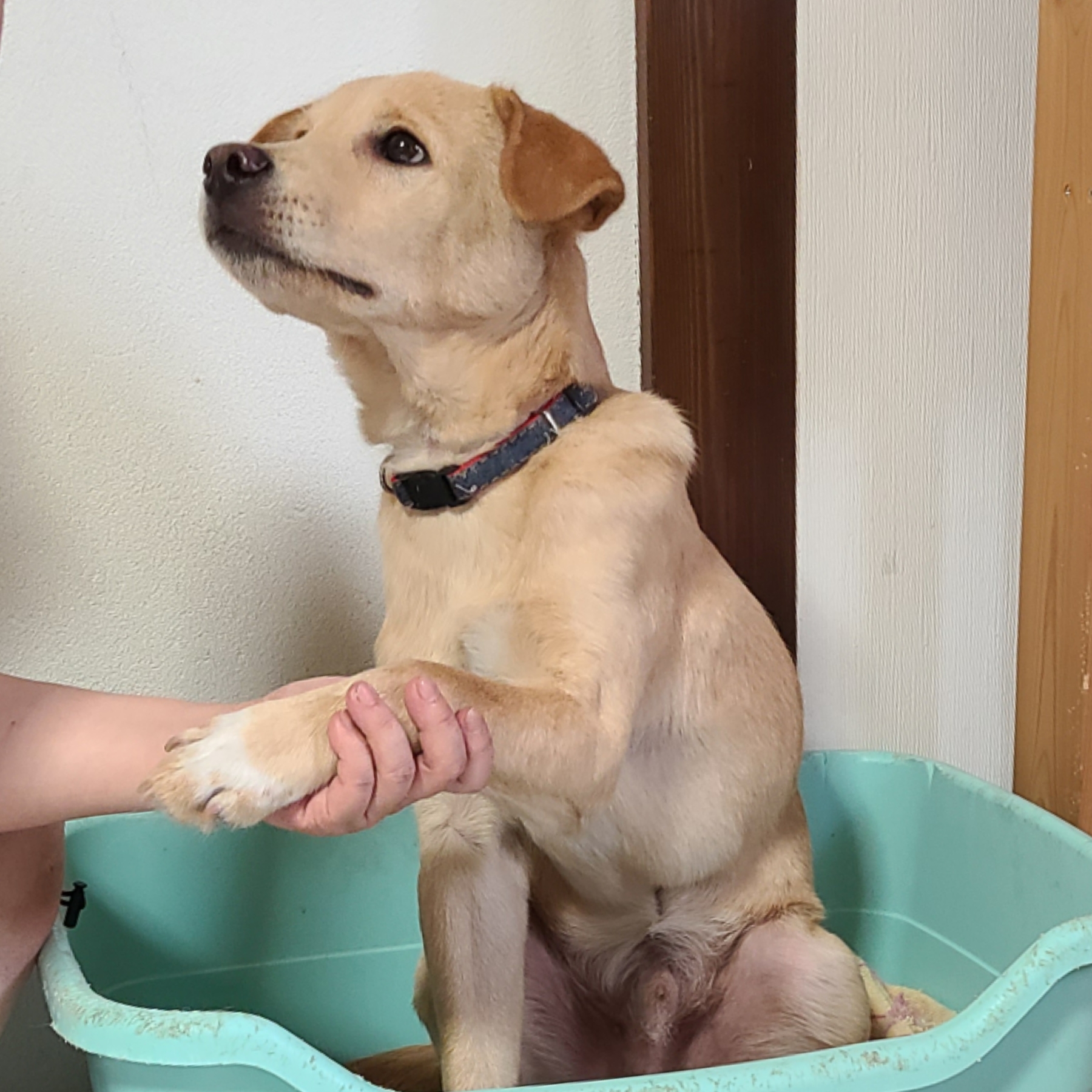 現在は預かりボランティアさん宅にて、先住犬と兄弟犬と一緒に生活しています。完全室内飼育中です。