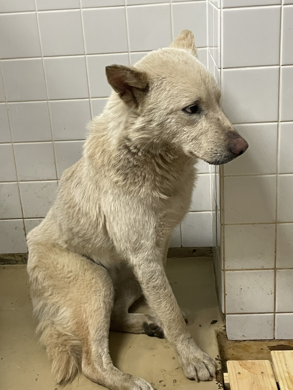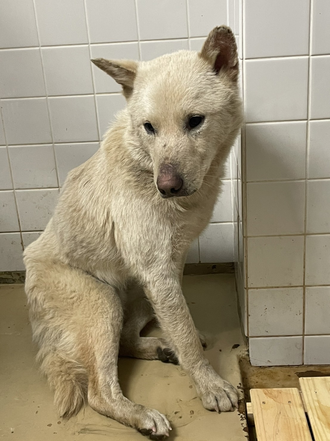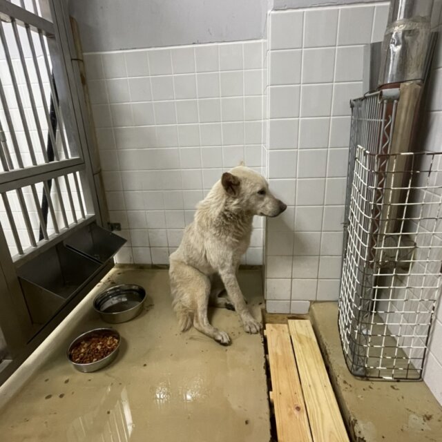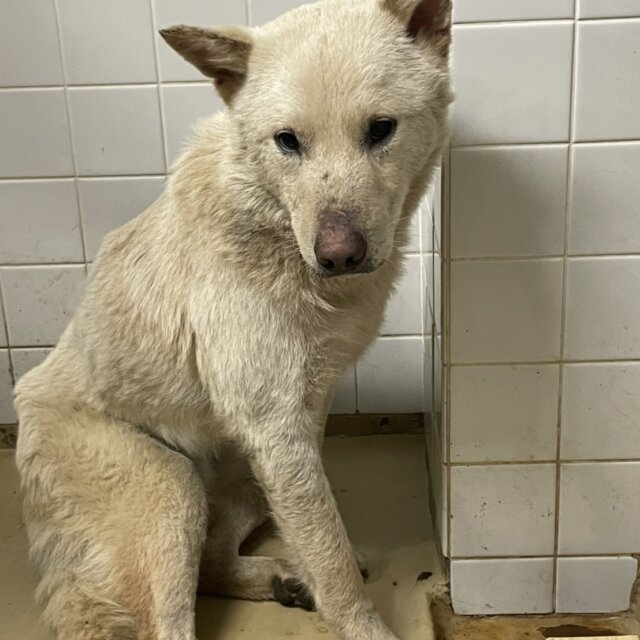 センターに捕獲されたこの子は1週間と言う短い命の期限をつけられました。引き出され現在は保護団体で毎日を頑張ってます。