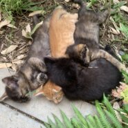 庭に子連れの2匹の母猫が現れました。子猫は4匹と2匹です。母猫達はTNR予定です。子猫達は野良の子らしくない、とても綺麗で可愛い子達です。兄弟で楽しく遊んでいます。