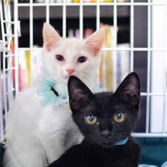 1匹飼育でも、同じ写真に写っている白猫の男の子ルッコラ君と一緒でも大歓迎です。