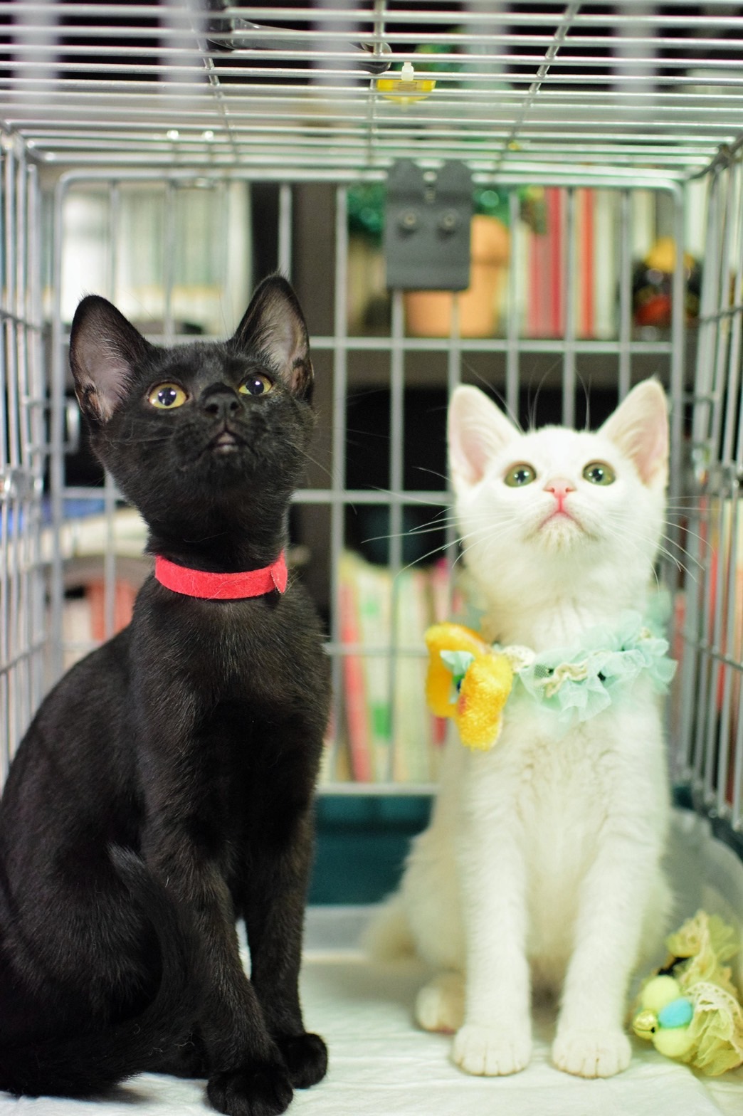 1匹飼育でも、同じ写真に写っている白猫の男の子のアメくんと一緒でも大丈夫です。