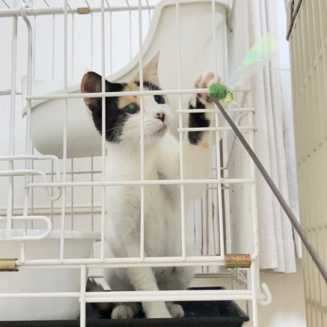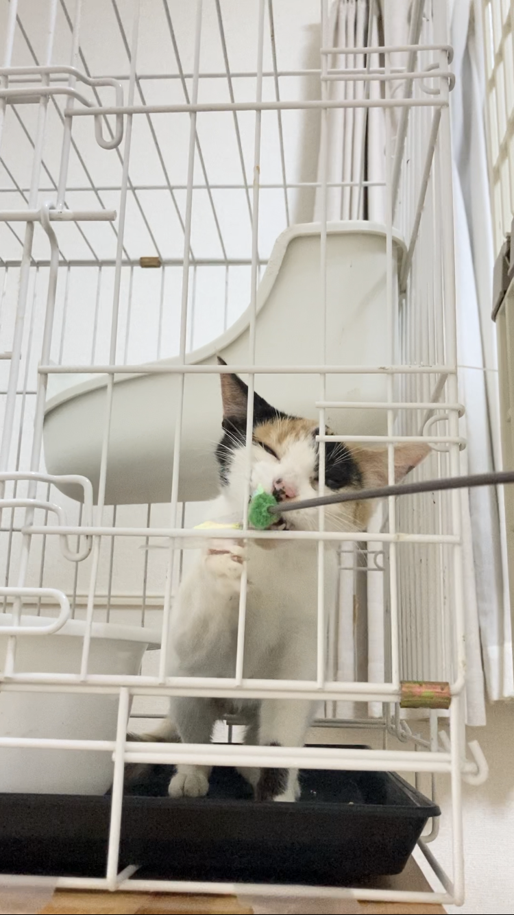 元々外で飼われていたのもあって、足に擦り寄って撫でてほしいとおねだりしていたそうです。おもちゃでもよく遊び、この小さな体で子育てをとても上手に頑張っていました。