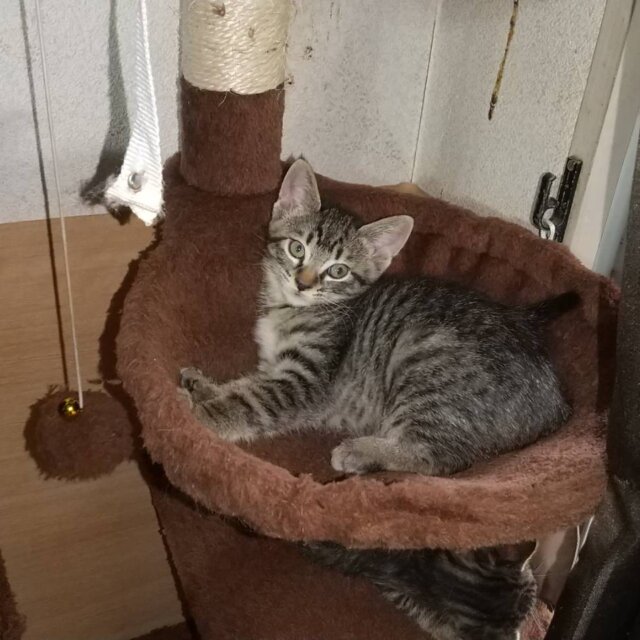 甘えん坊なサバトラの子猫(女の子/3ヶ月)