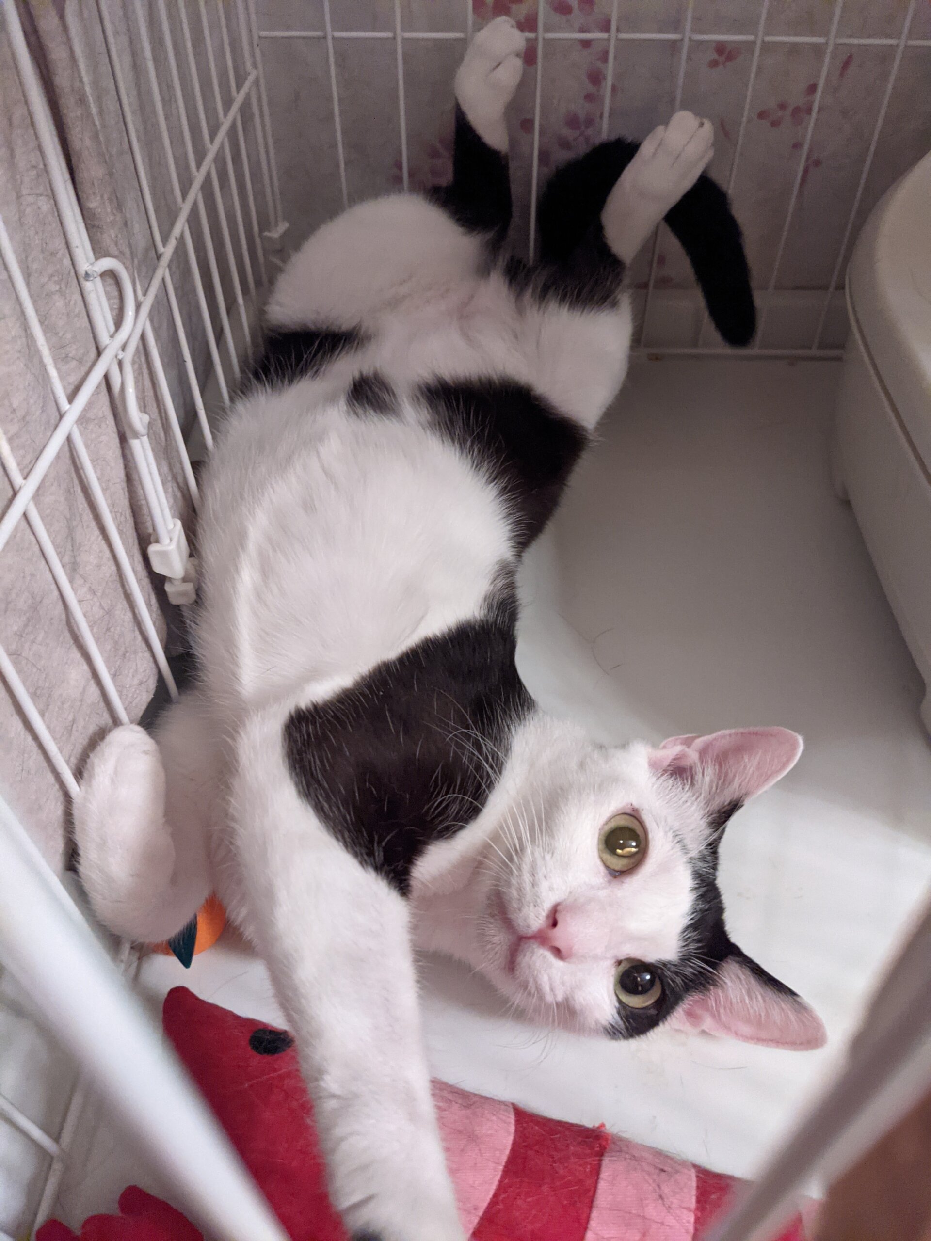 また、今猫保護活動をしている仲間より預かっていますが、うちにも二匹先住がいて、マロ君とはあまり相性が良くない様子で、うちの一匹は高齢なためストレスかけたくないので、マロちゃんには普段はケージに居てもらっています。