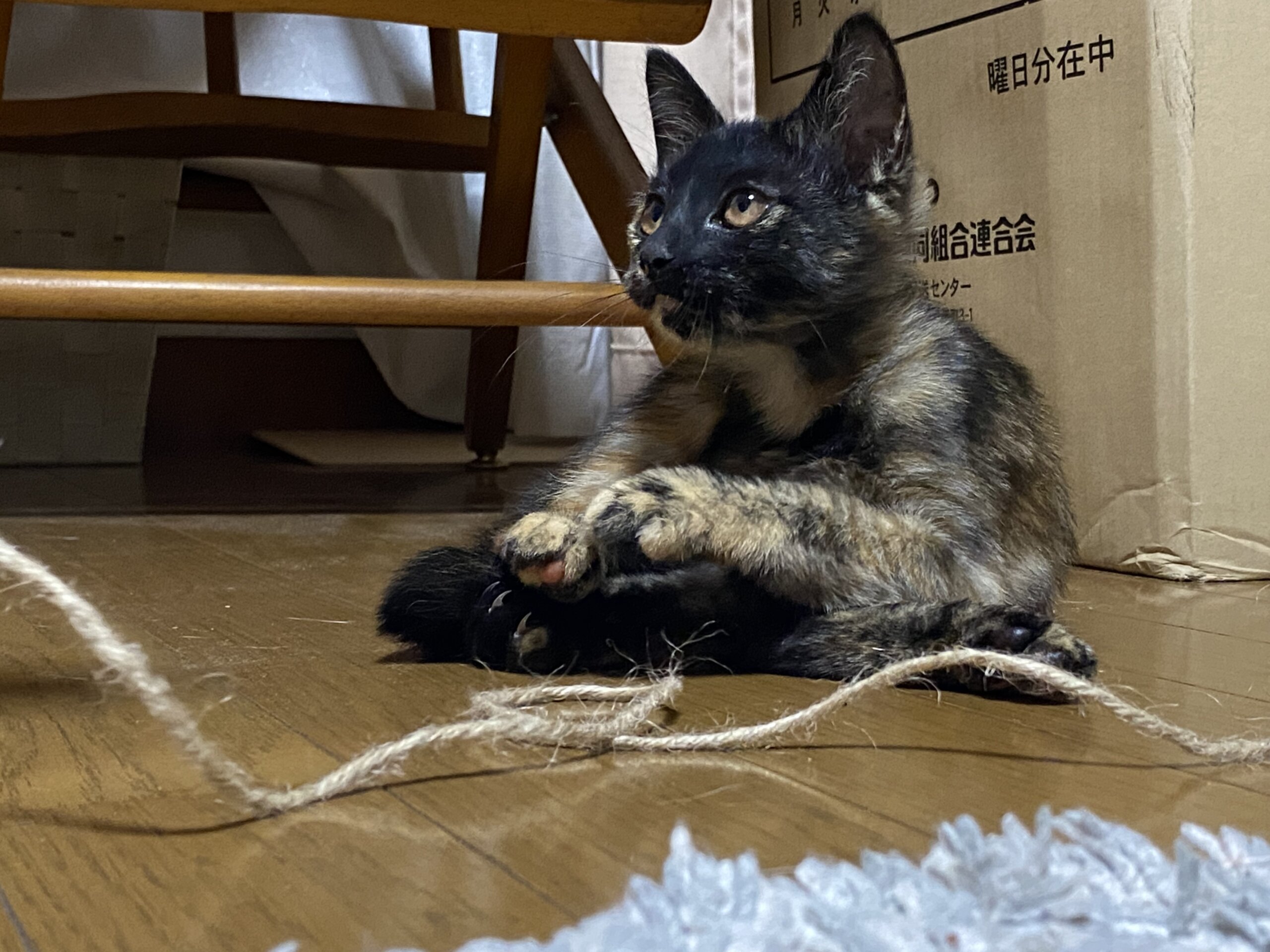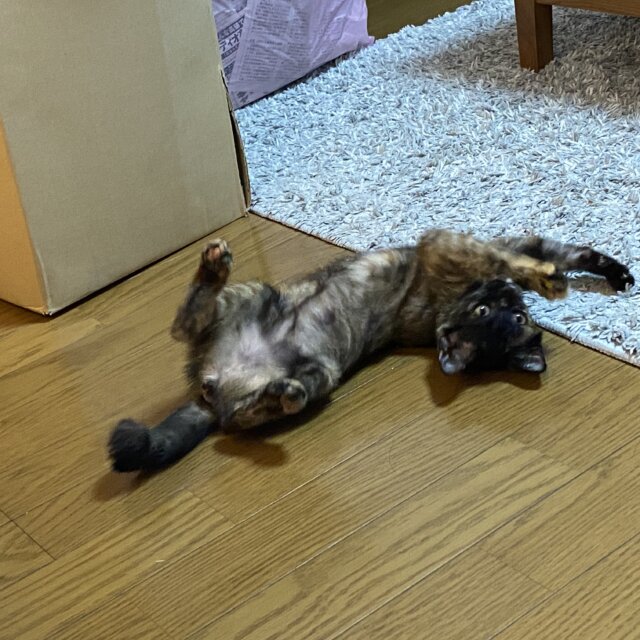 室内に保護してからも袋や靴下で一人遊びしたり元気に遊んでます。最初は少しだけ警戒しますが、すぐ人にも環境にも慣れて喉を鳴らして近づいてきます。一緒に遊んでーと誘ってきますかわいいです☺️