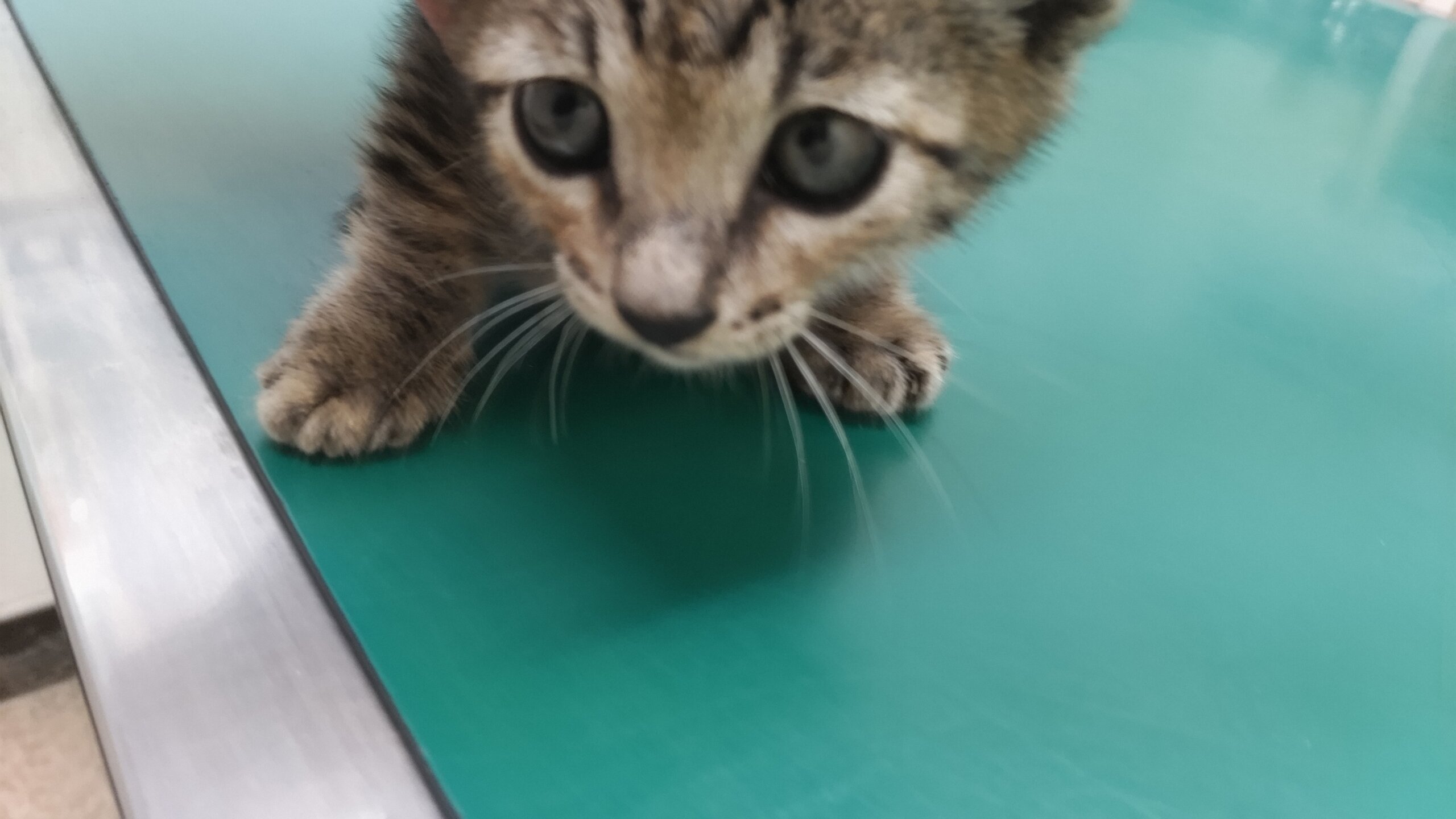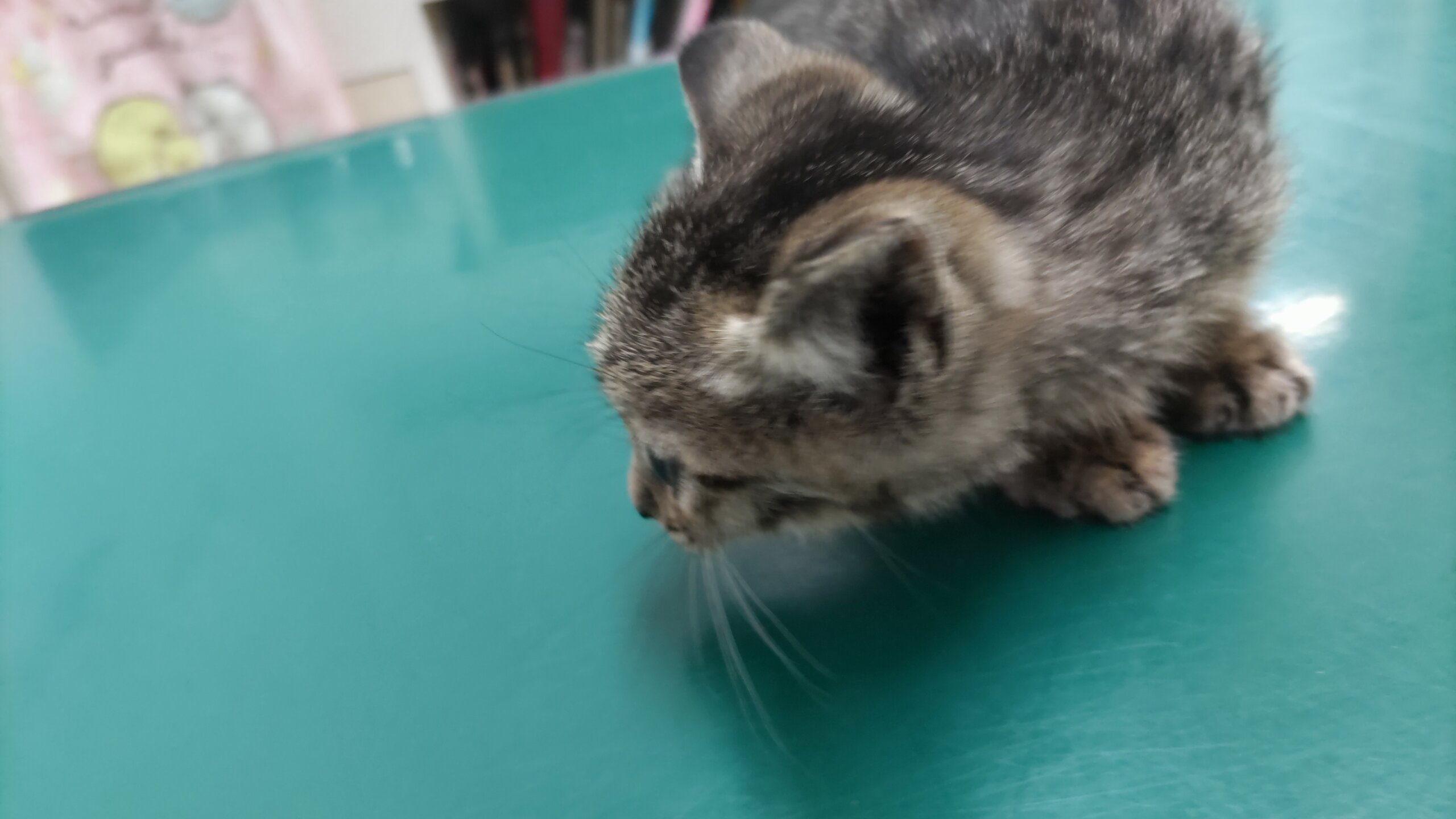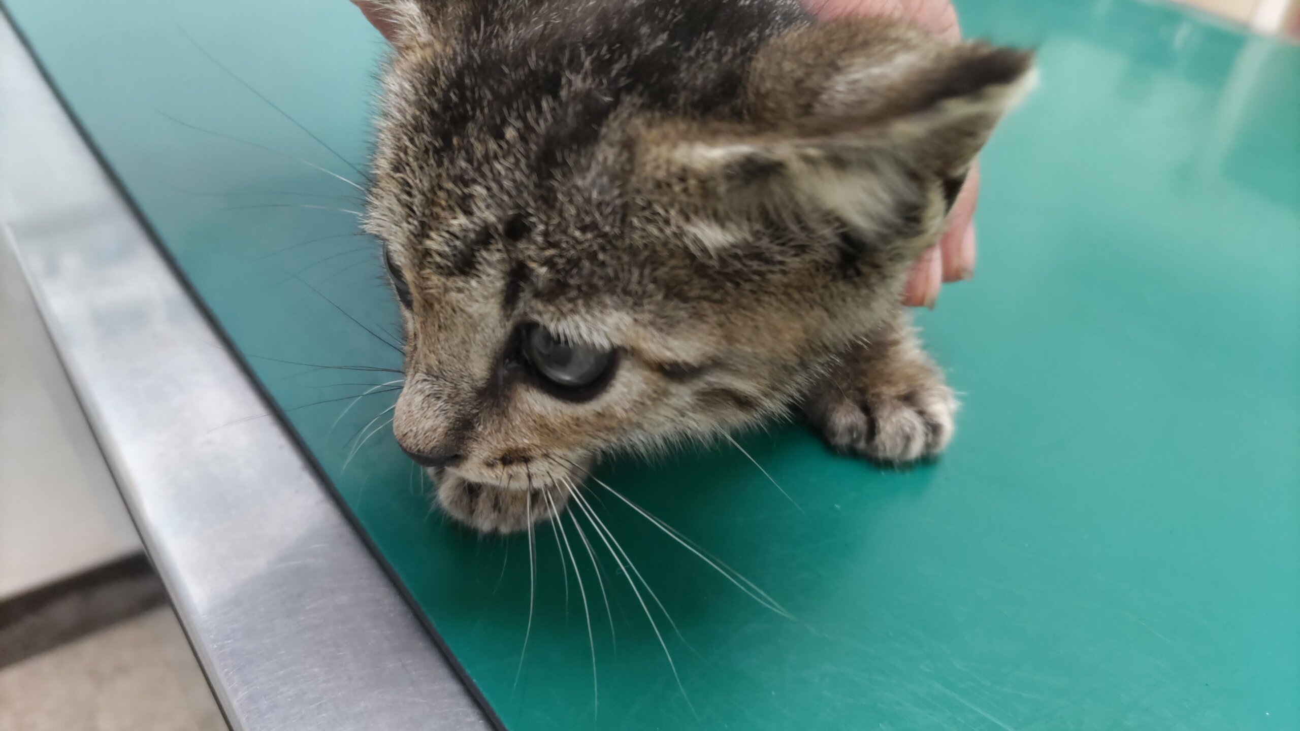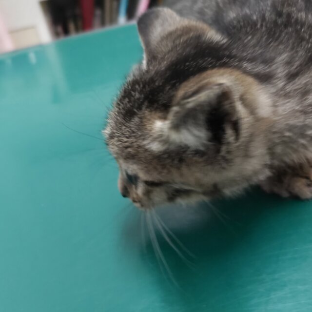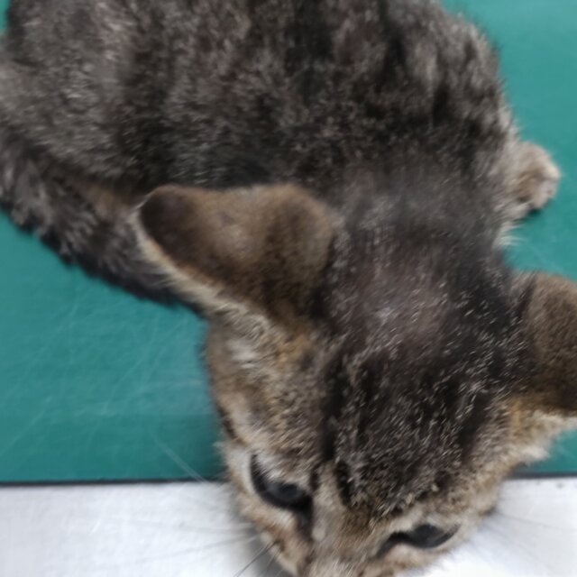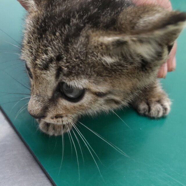 体長約25㎝、体重約550gでお医者様の見立てでは生後1.5~2ヵ月くらいとのこと。保護して間もなくは怖がって鳴いていましたがしばらく撫でていてあげたら落ち着いて静かになりました。瞳や口の中も綺麗な子です。頭頂部にケンカ傷らしき傷が3㎜程の大きさであります(すぐ治るだろうとのお医者様の見立てです)。