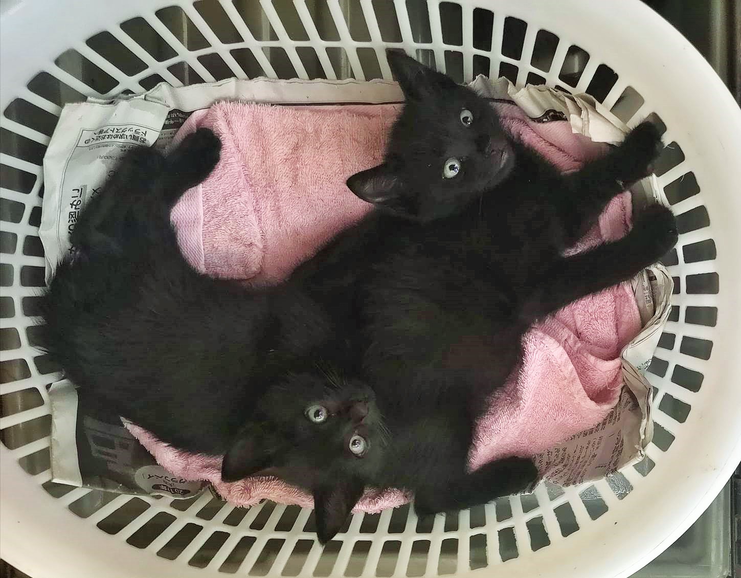 突然、隣町の餌やりさんから妊娠猫が餌を食べにきているので保護してほしいとメールをもらった。捕獲に行ったが出産前は捕獲できず出産してしまった。ママ猫が子猫をつれて餌場に出てくるようになったと連絡があったので、子猫、ママ猫共保護して里親募集をすることになった。