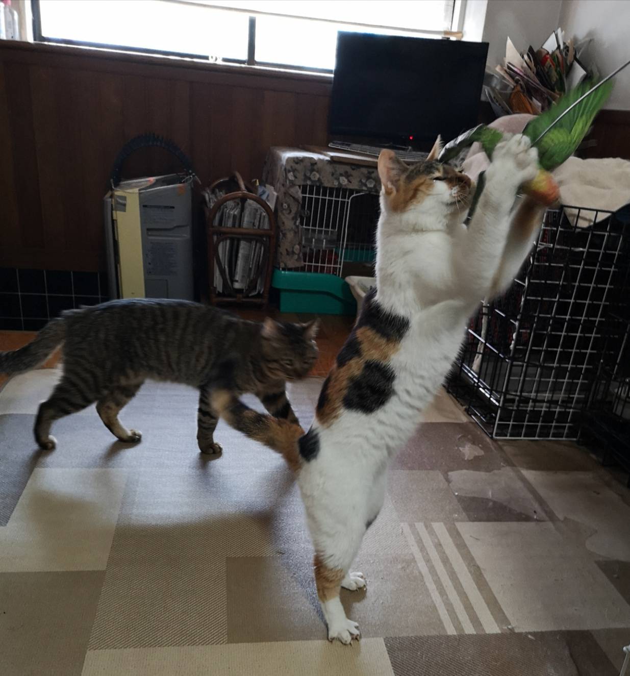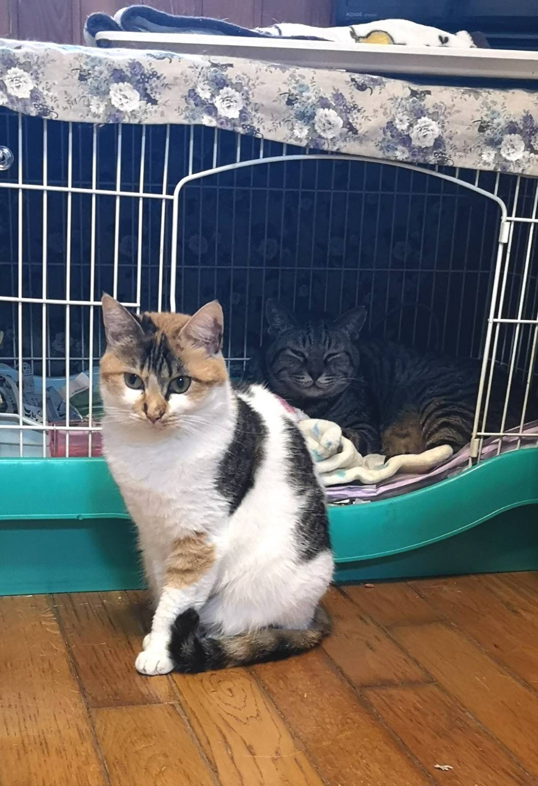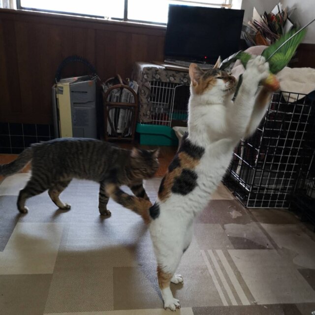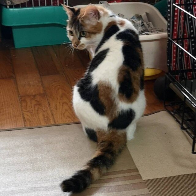 ビビりだがチュールなどのおやつが好きで少しづつさわらせてくれるようになった。三毛柄が大きくはっきりしている個性的な柄の三毛猫である。食欲旺盛でほとんど病院に行ったことはなく、健康
