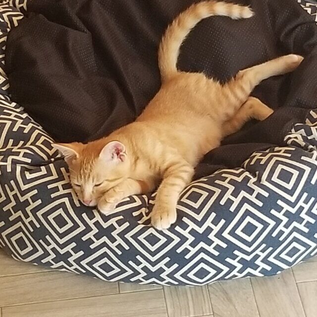 姉三毛(ウイルス検査陰性)と弟茶トラ(ウイルス検査見受診)は、それぞれの里親さんのもとで幸せな生活をスタートしています。ほのぼの系茶トラくんにも、よいご縁をお願いします。