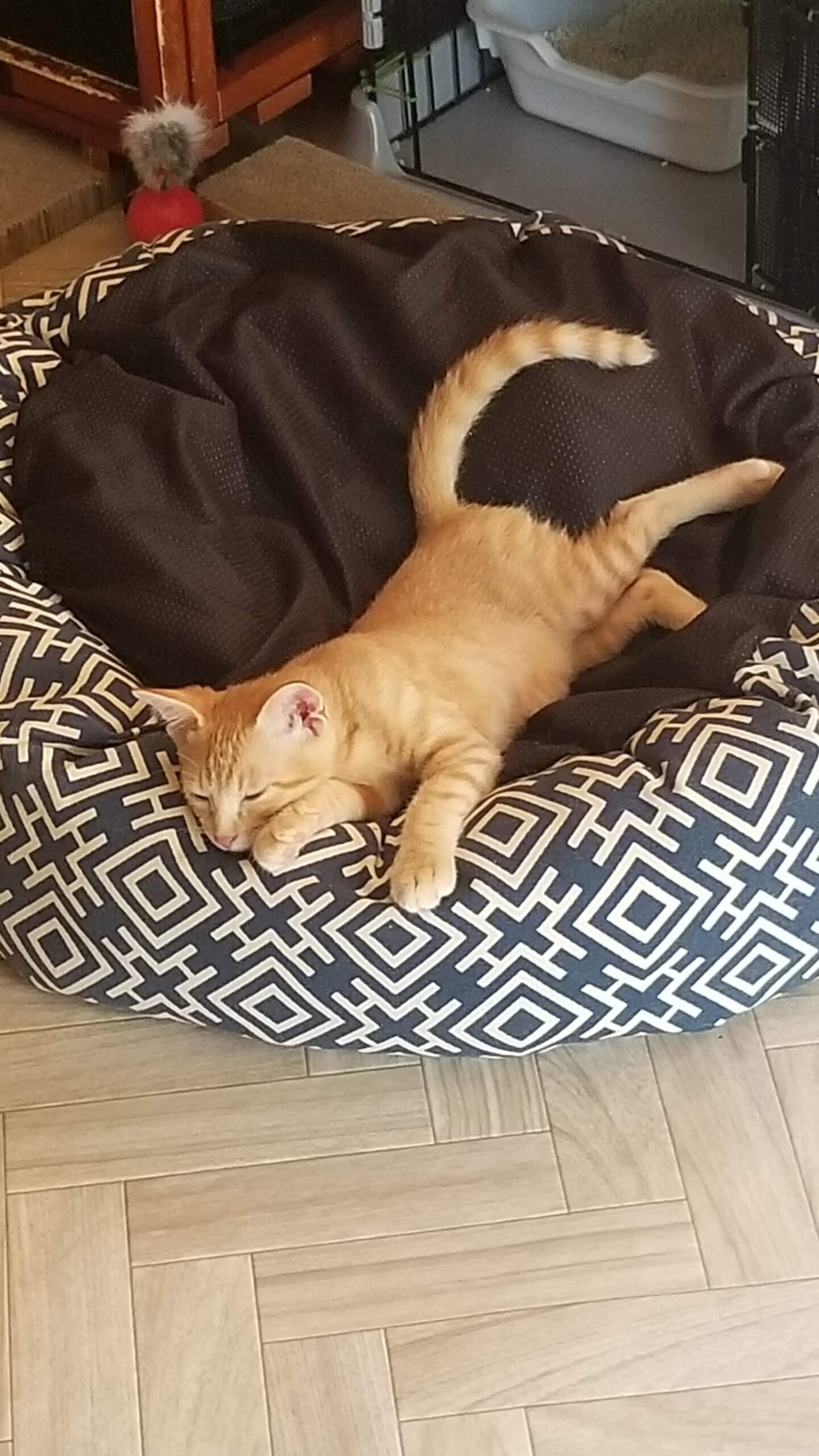 保護当初419gしかなかった体重は、めきめきと増えて7月末で1.6㎏に。元気に育ってくれて本当にうれしいです。母猫はTNR済み(ウイルス検査陰性)。