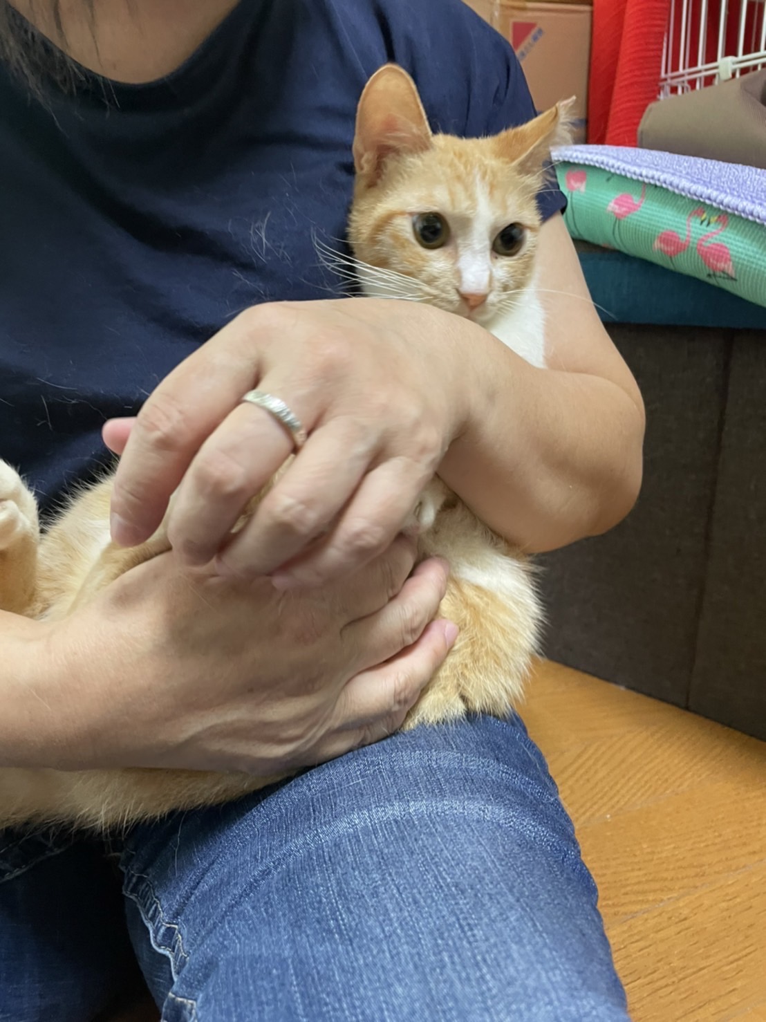 人馴れ抜群の可愛い茶白仔猫です。おてんば姫様でよく遊んでいます。