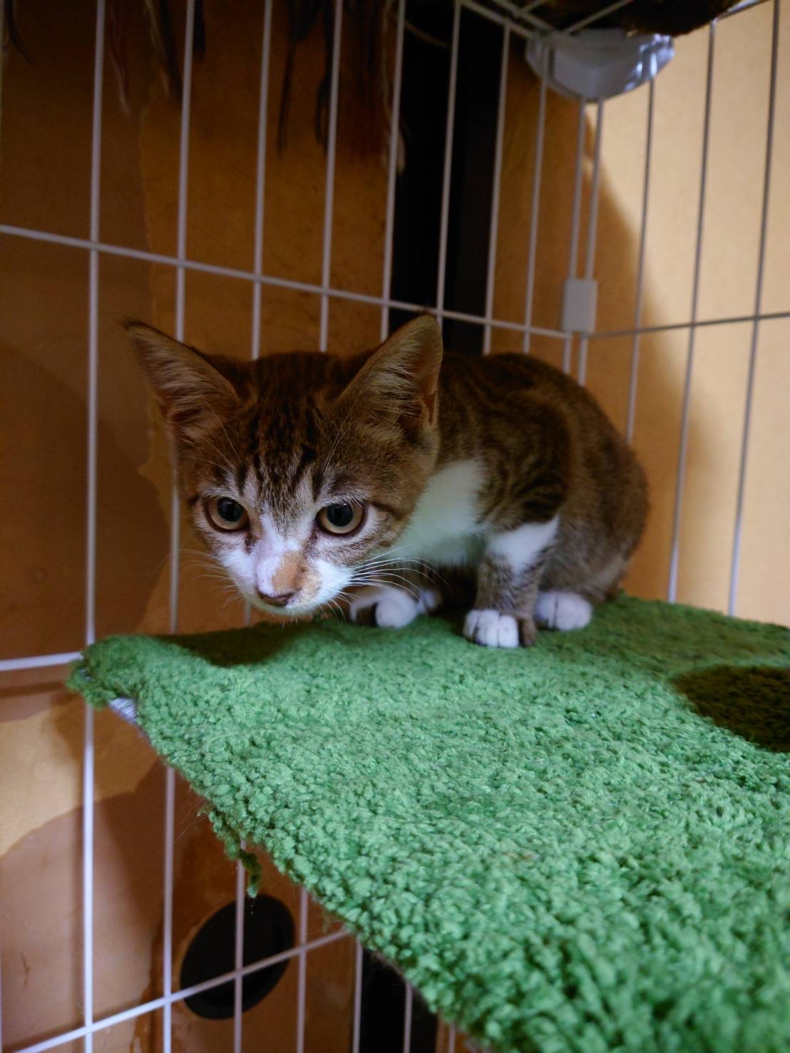 推定2.5〜3ヶ月のキュートなキジ茶白仔猫の女の子です。フードもよく食べ、トイレもバッチリです。