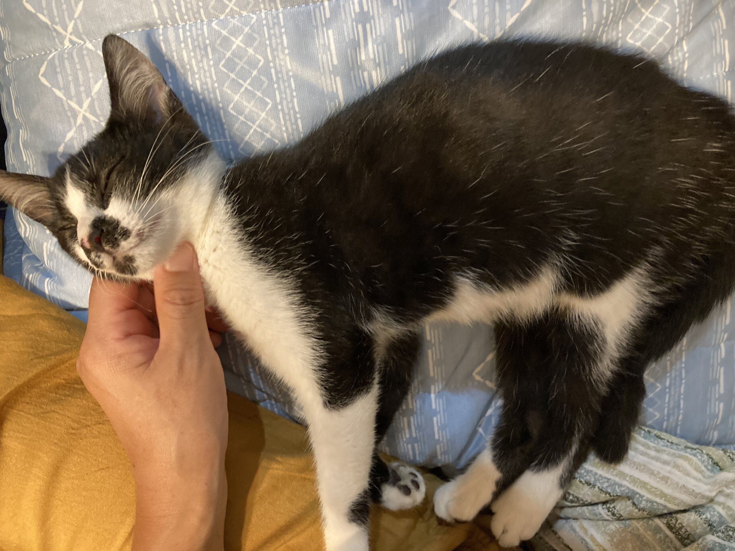 ものすごく人に懐いているのと、野良にしては状態が