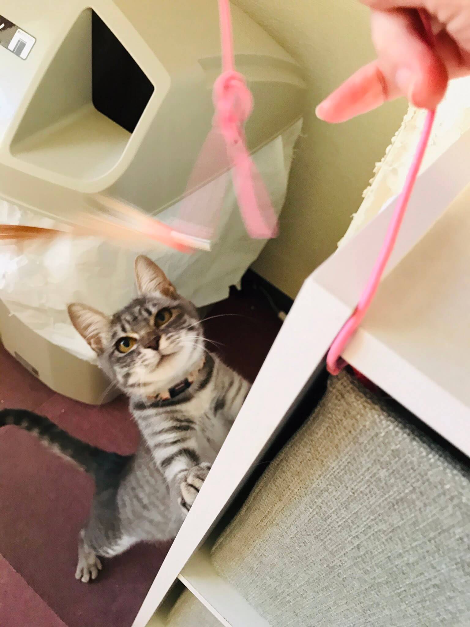 抱っこは好きじゃないですが、おもちゃで遊んでもらうのが大好きです!