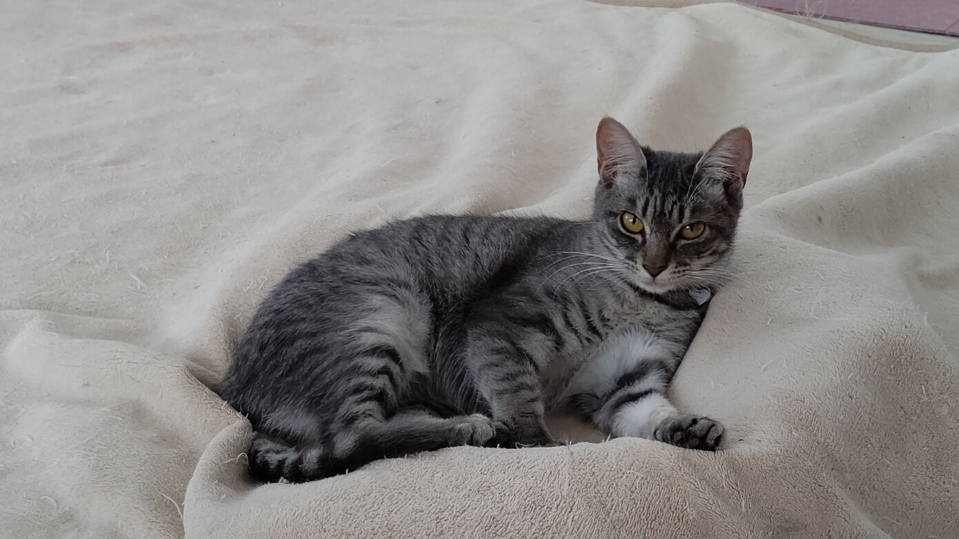 推定8ヶ月ひぃちゃん♀シルバーサバトラ美猫さんです♪