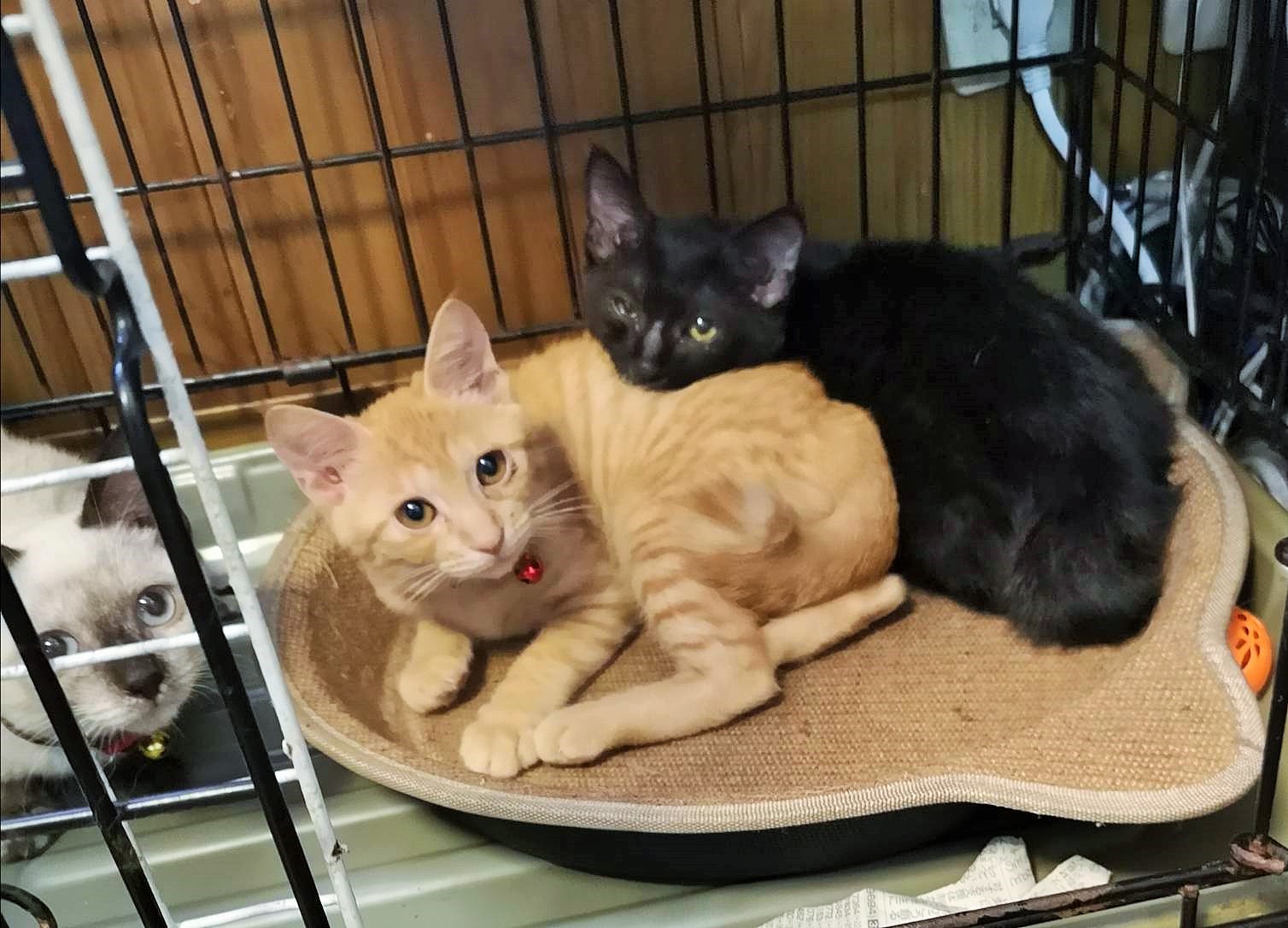 保護当時は威嚇もありましたが毎日抱っこして人馴れ訓練をしており、ほぼ抱っこはできます。 珍しいメスのチャトラ、シャムもメス、一番大人しい黒猫がオス。