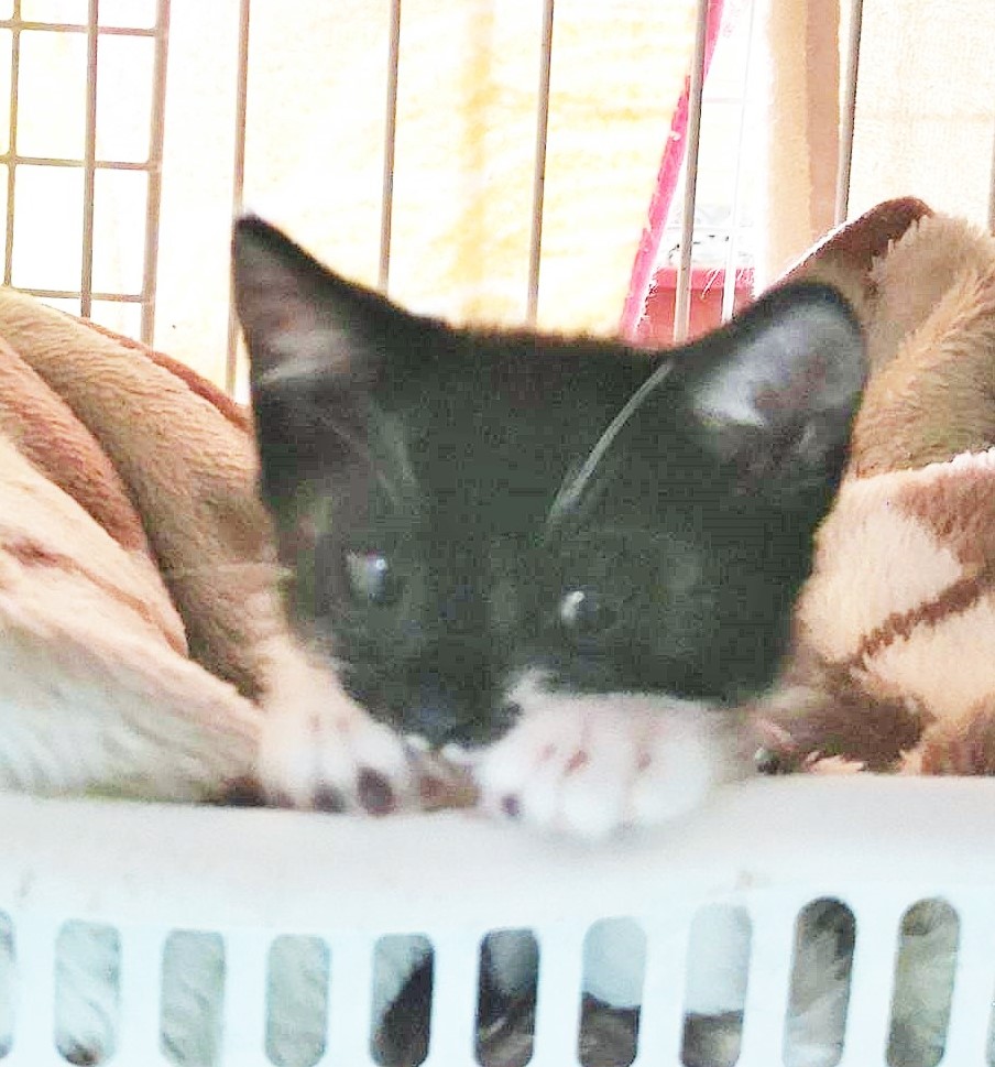 1日中たらいまわしになっていたせいで、わが家にきたときぐったりして低体温症になっていたので入院させたが、翌日元気になって退院できた。食欲もあり今は元気です。