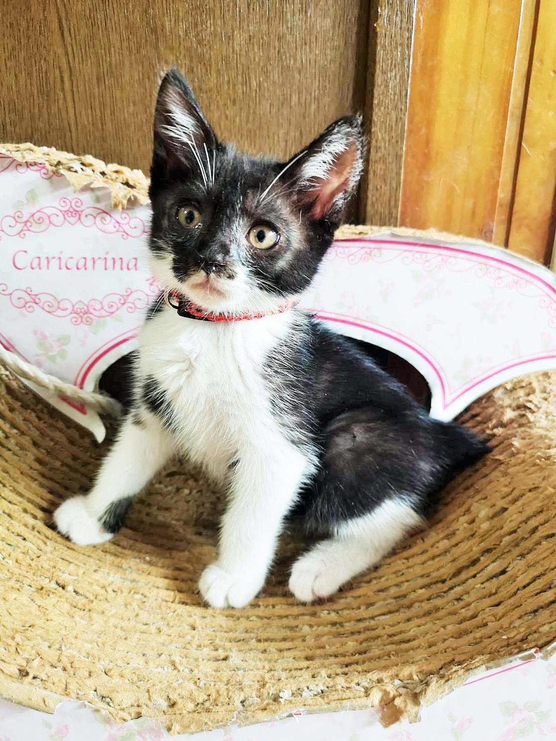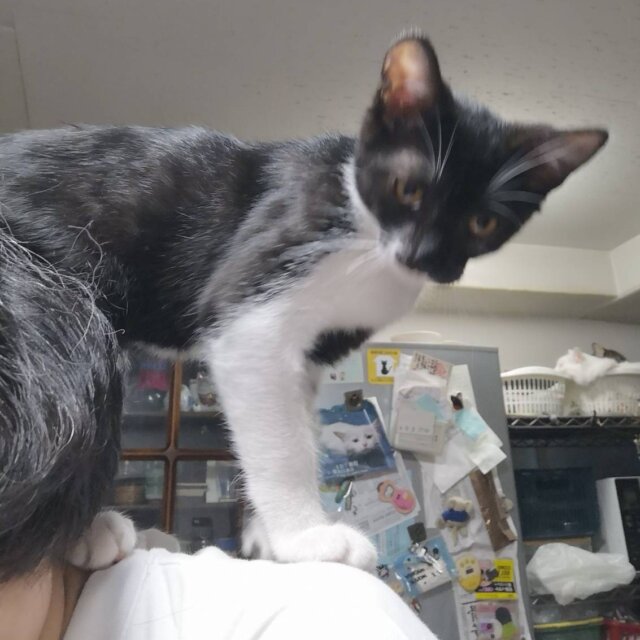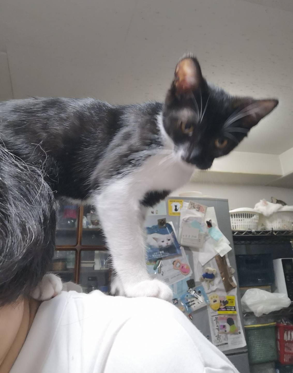 天真爛漫で無邪気な性格。 兄妹と一緒に保護されたわけではないので、遊び方がわからずちょっと乱暴だが、手足が長く運動神経抜群。 人にも猫にもなれている。