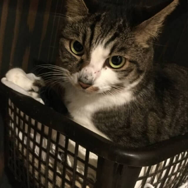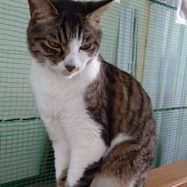 構ってほしいと大きな声で鳴くこともありますが、基本的に落ち着いていてイタズラもあまりしない子です。撫でられるのは好きだけど抱っこはあまり好きではありません。人間が何か作業をしていると側に座って見ていたりします。