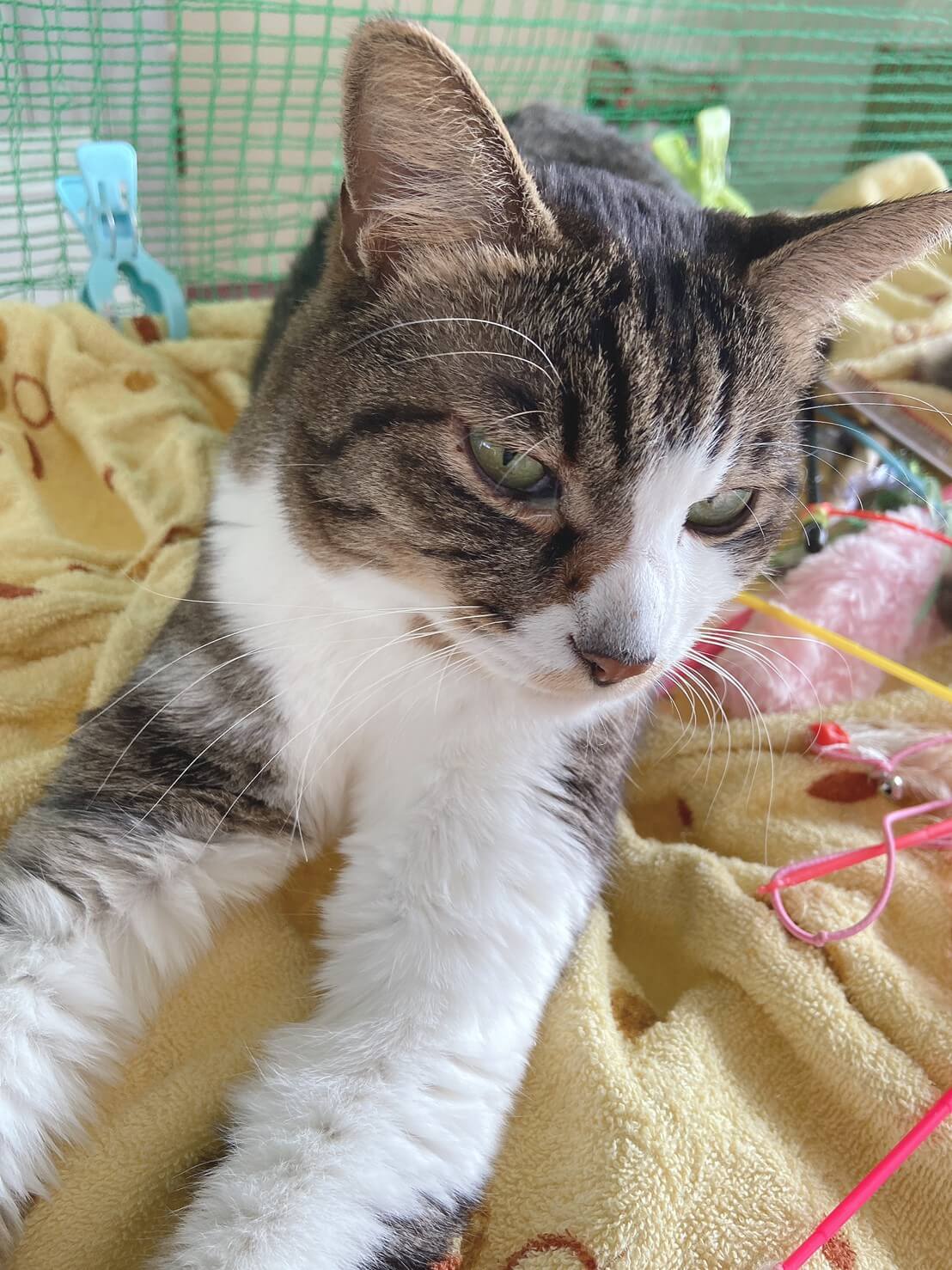キジ白のはるきくん、人間は大好きな甘えん坊さんだけど猫は苦手なようです。