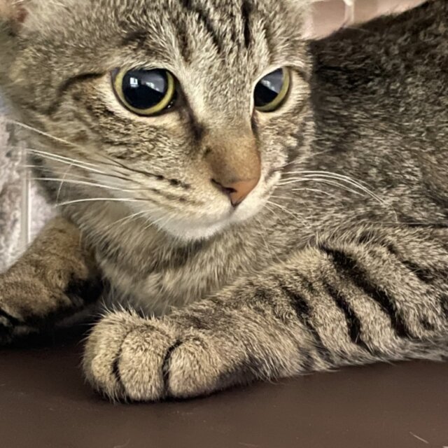 キュートなキジトラの女の子です。フードもよく食べ、トイレもバッチリです。