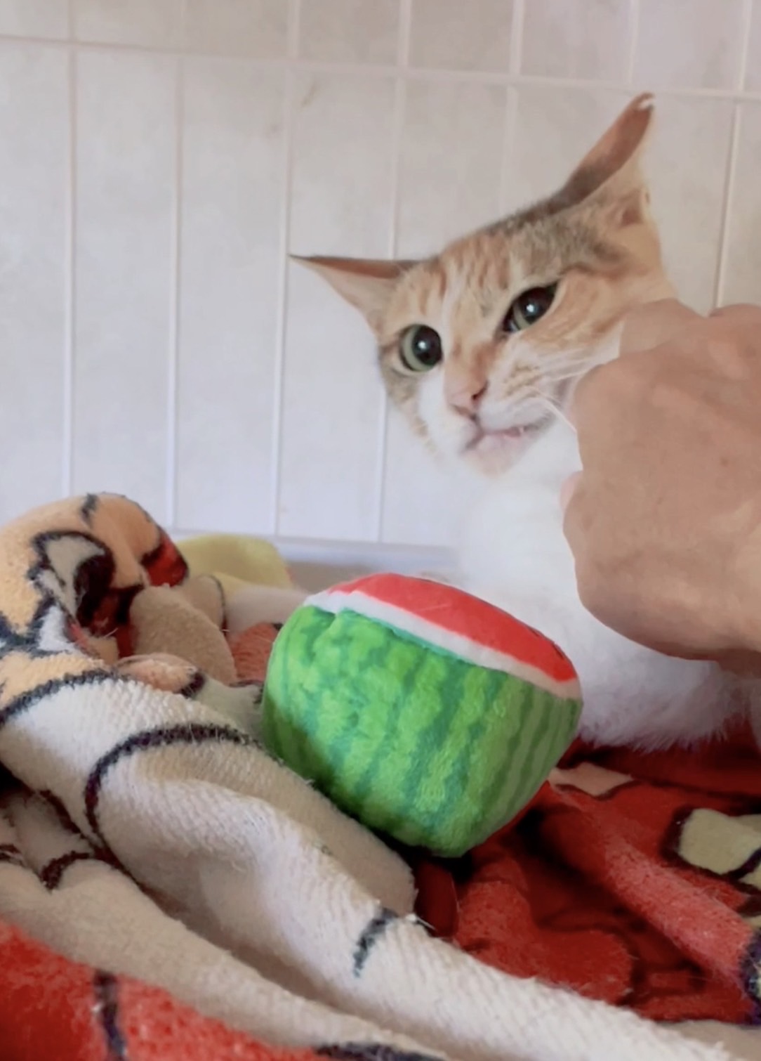 ナデナデが大好きで大人しく、抱っこ練習中です。