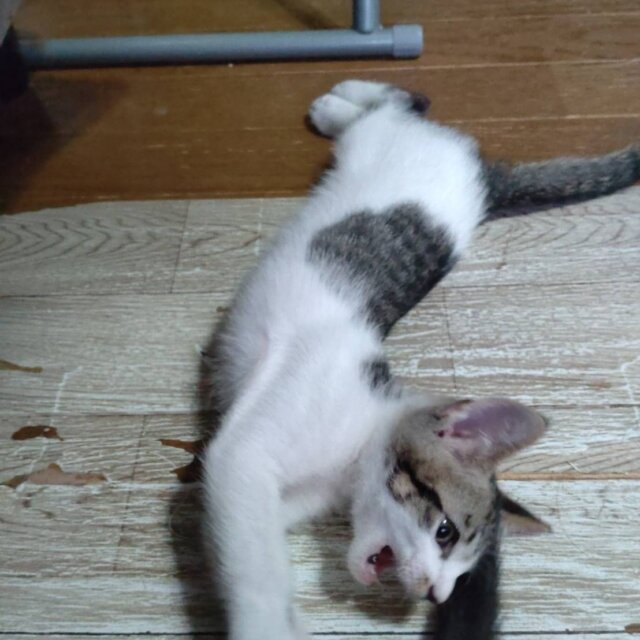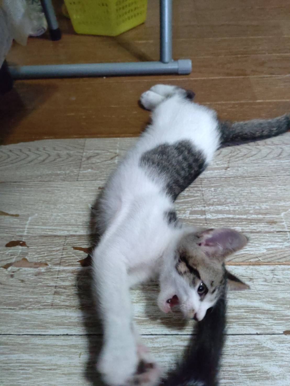 近所の方が、家の敷地に投げ入れた模様。飼い猫はいますが、本当に残念な行動です。現在は元気に兄妹猫と走り回っています。