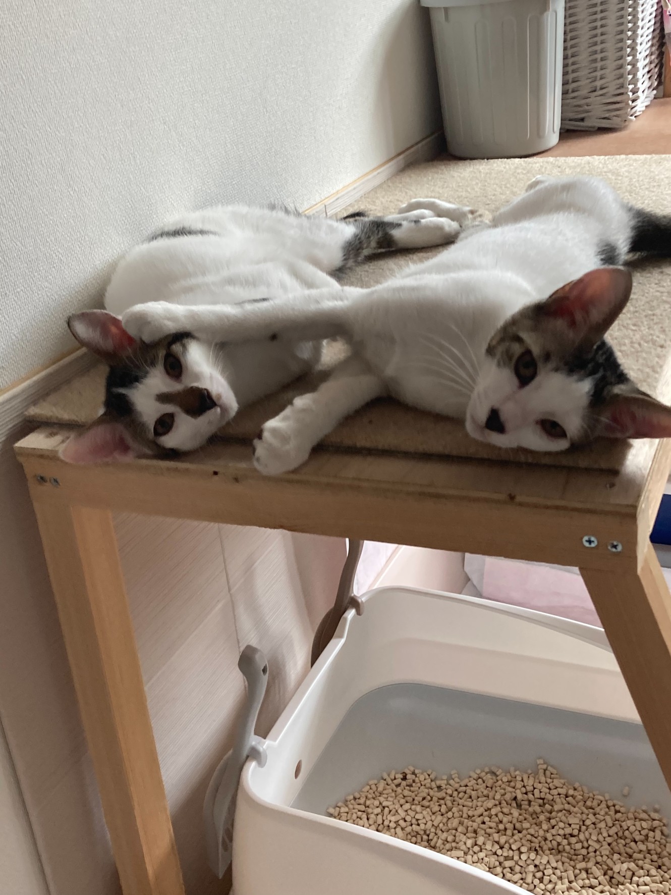 親子で保護し三兄弟でしたが一匹は里親様に。寂しくない様に2匹一緒にと応募しました