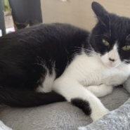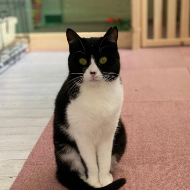 ハチワレでお鼻にハート模様があるきゅーとちゃん。
