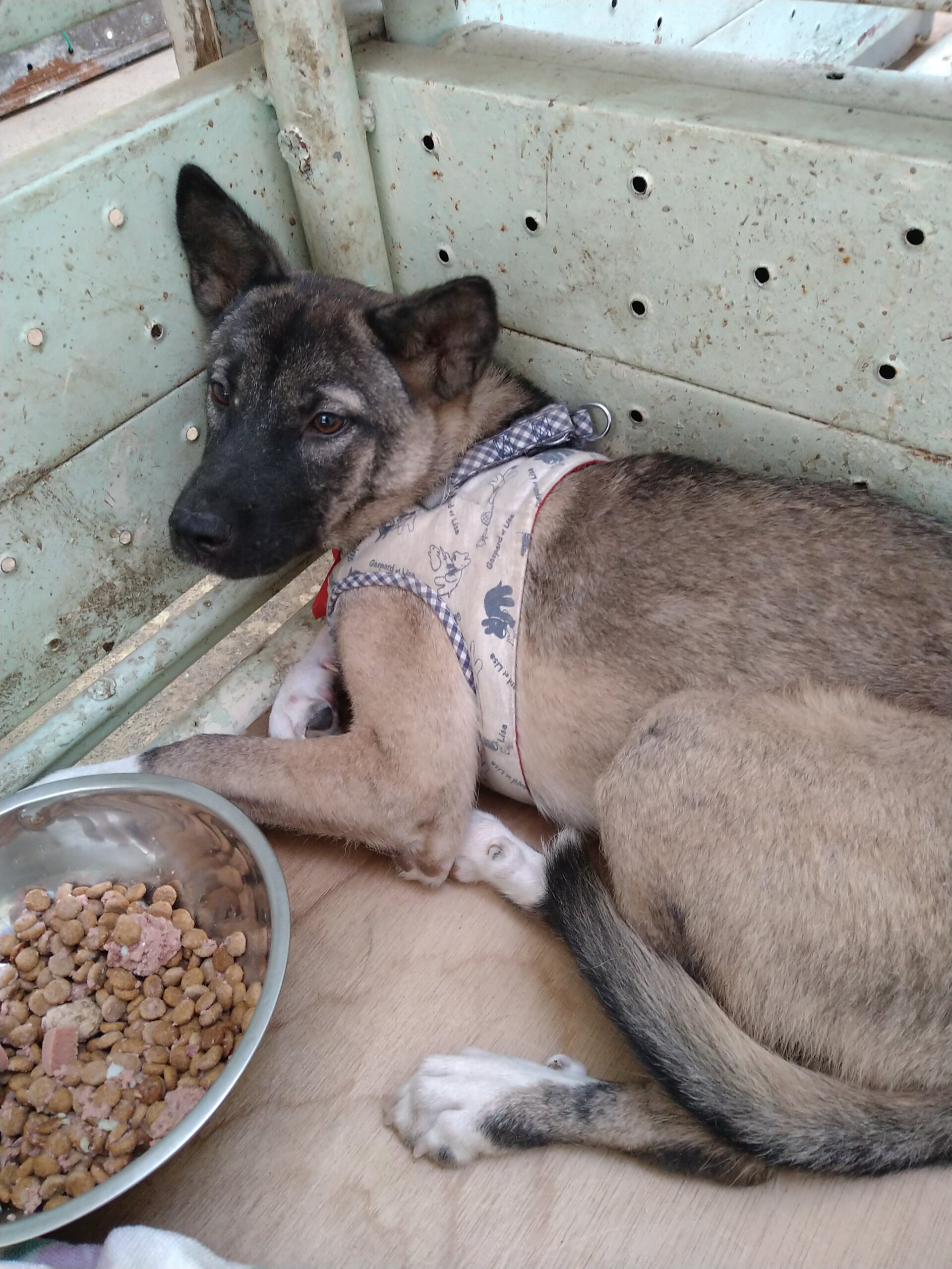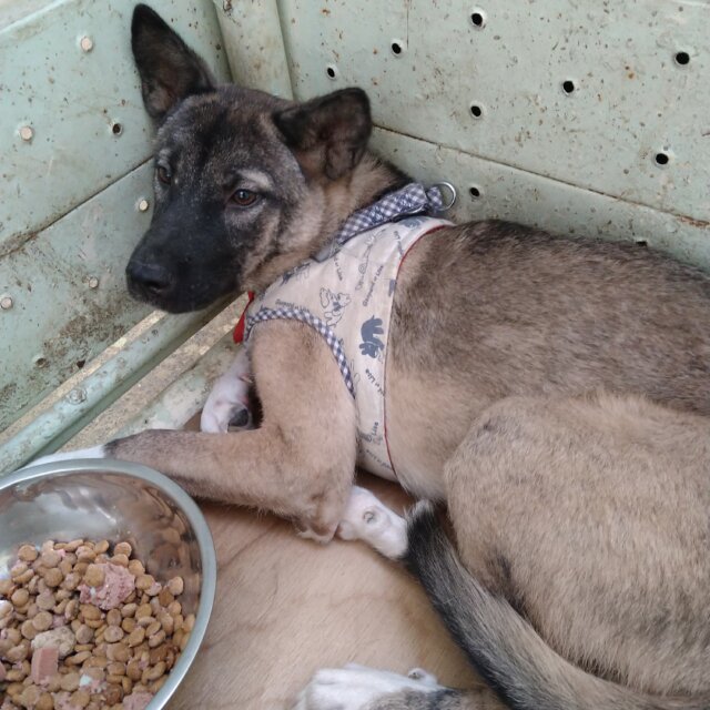 この子は、センターに捕獲され、期限を迎えた為に私達ボランティアご引き出し、現在は山口県の保護団体で預かってもらってます。まだまだ幼くて、緊張してますが毎日頑張ってます。とってもかわいい🥰子です。